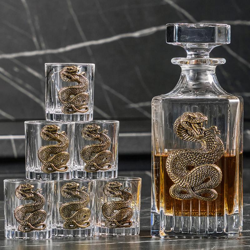 • Комплект включает шесть стопок и штоф с изысканной накладкой "Змея"