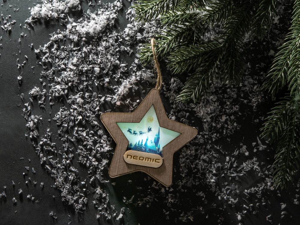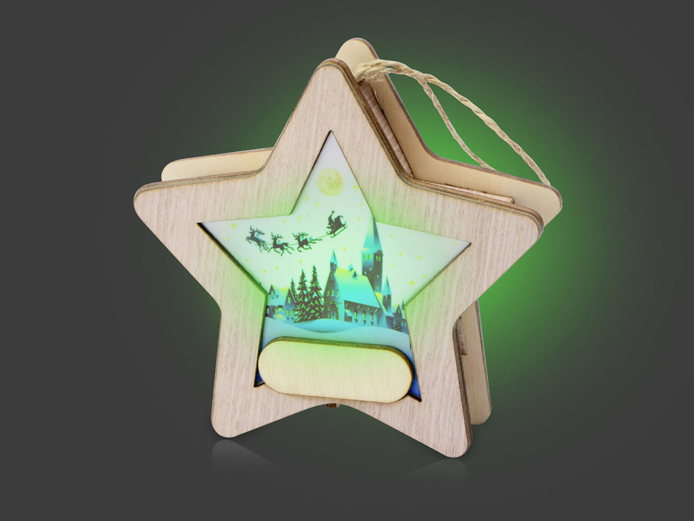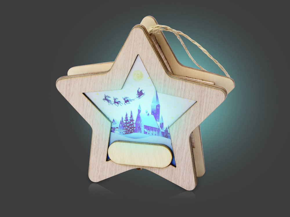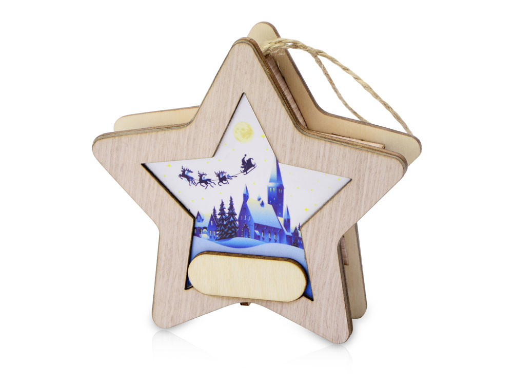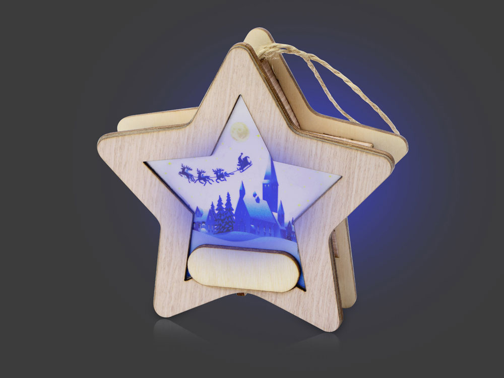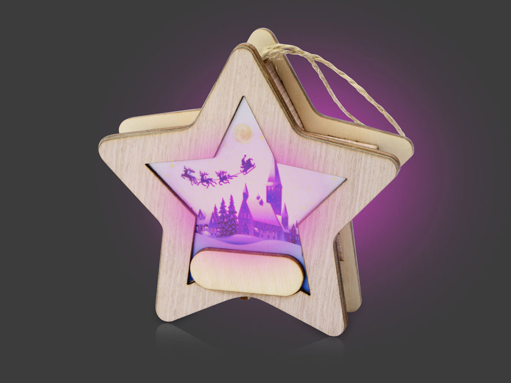 Новогодняя подвеска для елки станет прекрасным вариантом подарка: посмотрите, эти игрушки видно не только при свете дня, но и в темноте, ведь они могут светить сами! Игрушка с подсветкой выполнена из фанеры, фрагмент с изображением — напечатан на пропускающем свет материале. Подвеска сияет мягким разноцветным светом, подчеркивая пейзаж. Станет прекрасным вариантом для подарка, который будет радовать ваших адресатов долгие годы, каждую зиму красуясь на зеленых лапах елки.