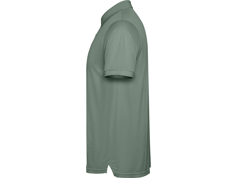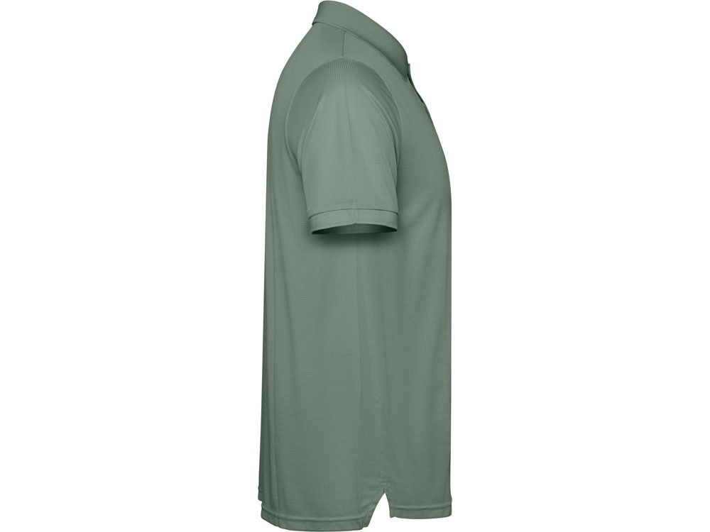 Мужское поло с коротким рукавом из технологичного полотна. Рибовый воротник 1х1, застежка на кнопки. Отстрочка в тон. Рибовые манжеты.