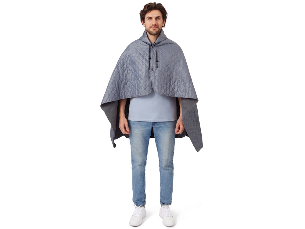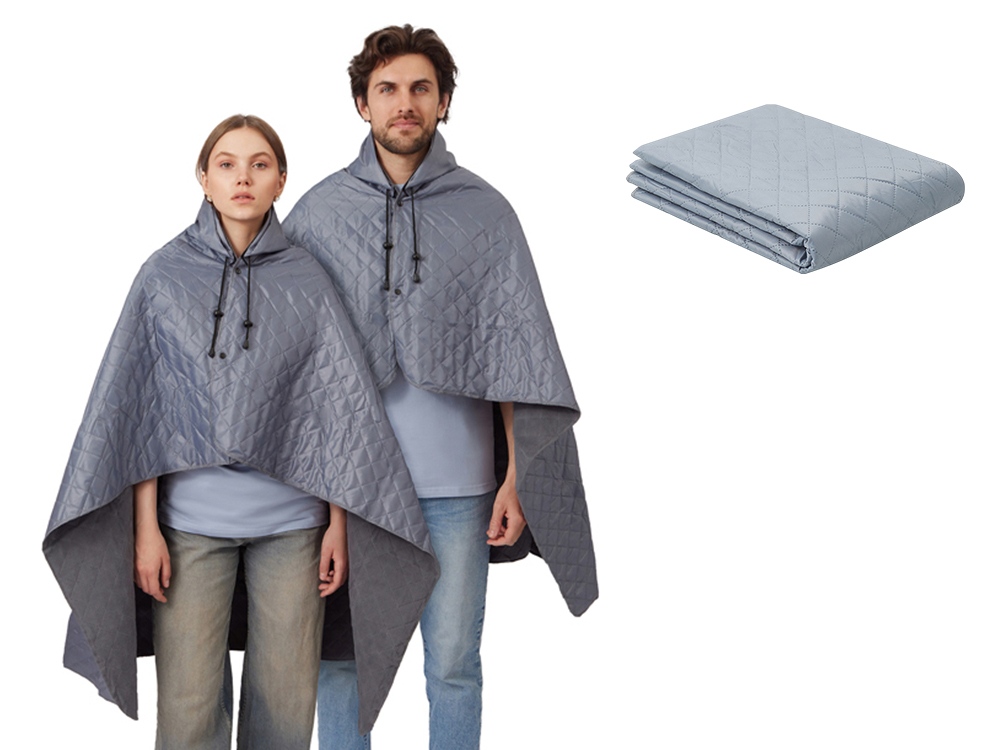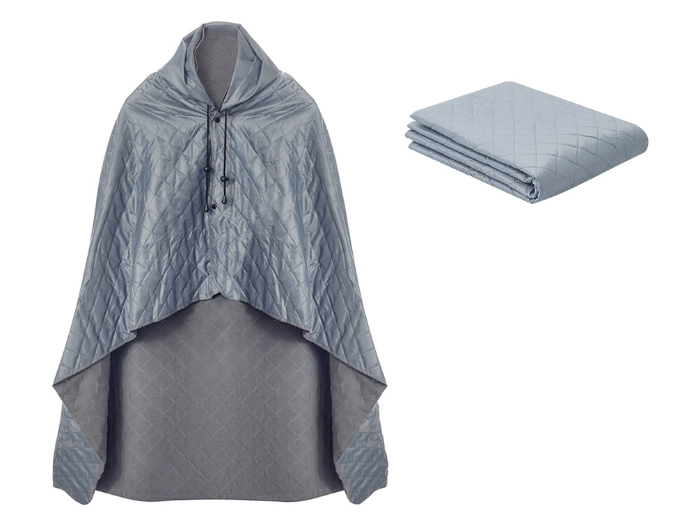 Плед 2-в-1 можно использовать как непромокаемое покрывало на землю и как согревающую и непромокаемую накидку во время пикника на природе. С одной стороны пледа водоотталкивающее покрытие, с другой - мягкий флис. На внутренней стороне из флиса приятно и тепло сидеть, а наружная сторона из полиэстера с водоотталкивающим покрытием не позволяет пледу намокнуть или сильно испачкаться. Для больше удобства использования пледа во время дождя в комплекте идет капюшон, который фиксируется с помощью липучки. Накинув плед на плечи, застегните его на кнопки вверху и наденьте капюшон. Вы не промокните во время неожиданного дождя! В комплекте идет мешок для хранения, который можно использовать для нанесения вашего логотипа.