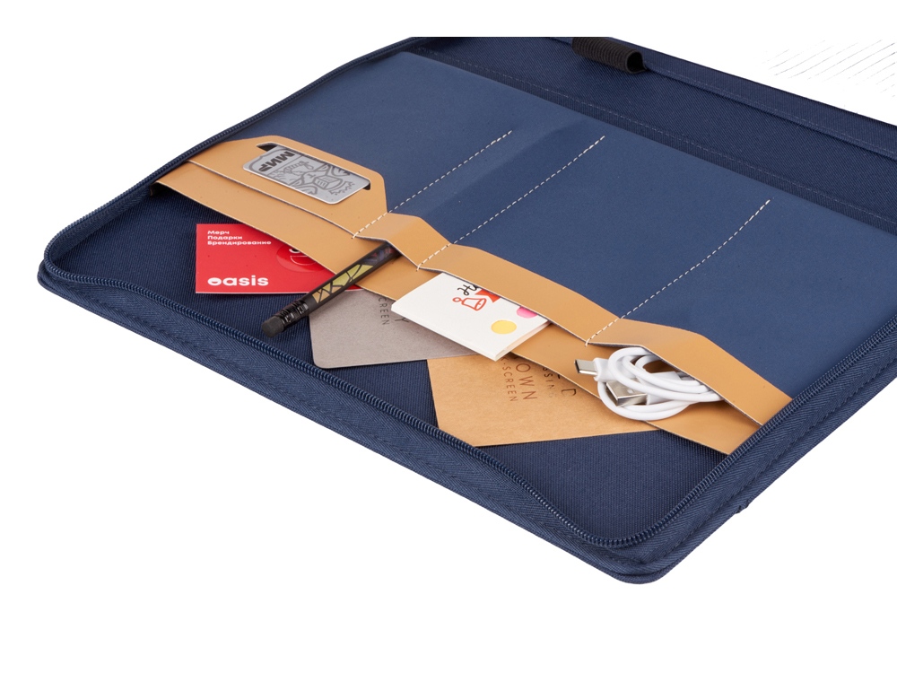 Папка-портфолио Harvey от Lettertone - незаменимый органайзер, который поможет держать все нужные вещи под рукой. Обложка Harvey выполнена из переработанного пластика (RPET). Внутри папки 40 листов FSC бумаги плотностью 80г/м2, изготовленной с соблюдением экологических норм, на обложке - карман для визиток или бумаг. Также есть петля для ручки и карманы для телефона, проводов, банковских карточек и/или визиток и даже для планшета. - плотная твёрдая обложка не даст бумагам помяться; - несколько карманов разного размера; - петля для ручки; - 40 листов А4.