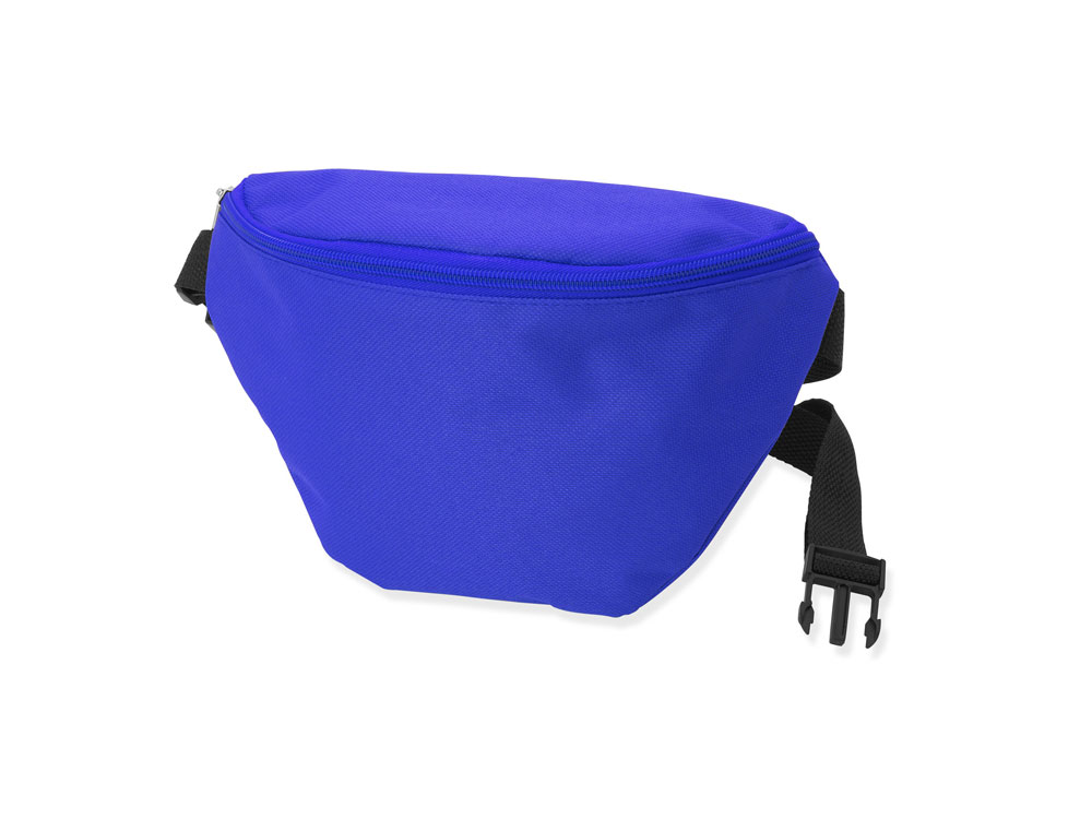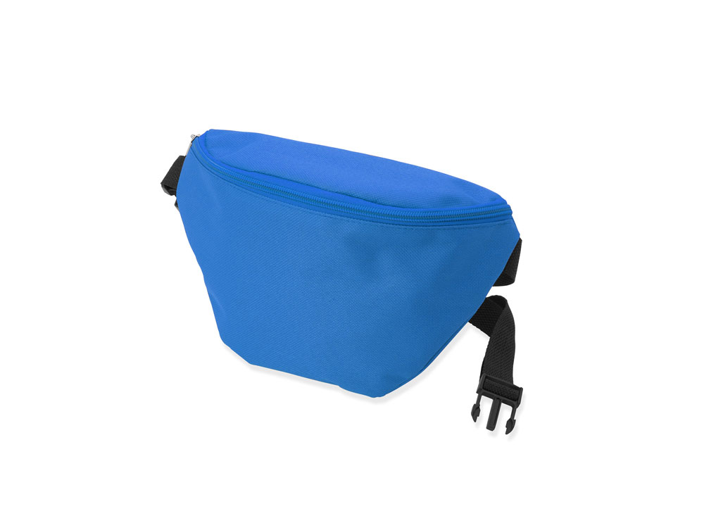 Поясная сумка с передним и задним карманом. Цветные молнии и ручки в тон поясной сумке. Черный ремешок и регулируемая застежка.