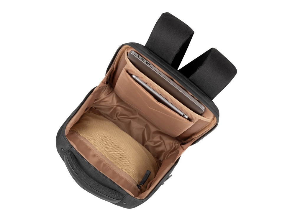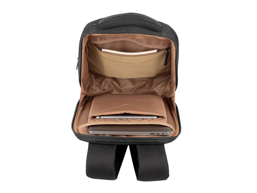 Материал ECO-FRIENDLY RPET полиэстер изготовлен из использованных пластиковых бутылок, которые обычно попадают на свалку или в океан. При производстве каждого чехла используется эквивалент 8 пластиковых бутылок по 500 мл. Водоотталкивающая ткань. • Отделение для ноутбука защищено водостойкой молнией, имеет мягкие стенки, специальную систему защиты дна и дополнительное внутреннее отделение для планшета до 11. • Внутри объемного основного отделения имеются дополнительный сетчатый и карман на молнии. • На передней панели расположены два внешних кармана на молнии для аксессуаров, смартфона, ручек, съёмный карабин для ключей, которые обеспечивают максимальную функциональность. • Удобная ручка с элементами искусственной кожи для переноски и наплечные ремни со смягчающими подкладками помогут чувствовать себя комфортно в самом долгом путешествии. • На задней стенке имеется ремень крепления к багажной сумке и скрытый карман на молнии для паспорта, бумажника. • Боковой карман на молнии для ёмкости с водой или других мелочей. • Специальная система крепления ремешков на липучке закрепляет их и создает дополнительное удобство.