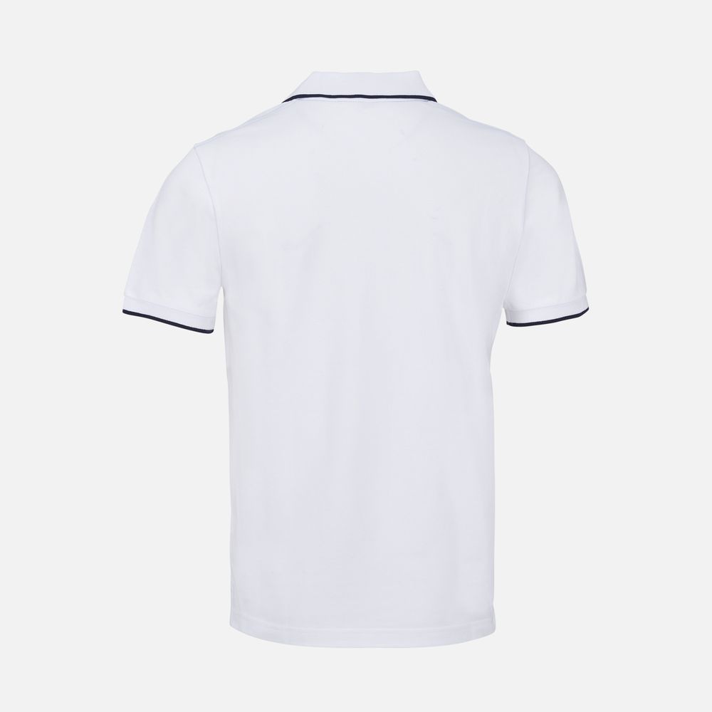 Рубашка поло унисекс Palermo, белая с темно-синим купить оптом и в розницу с нанесением логотипа в Москве