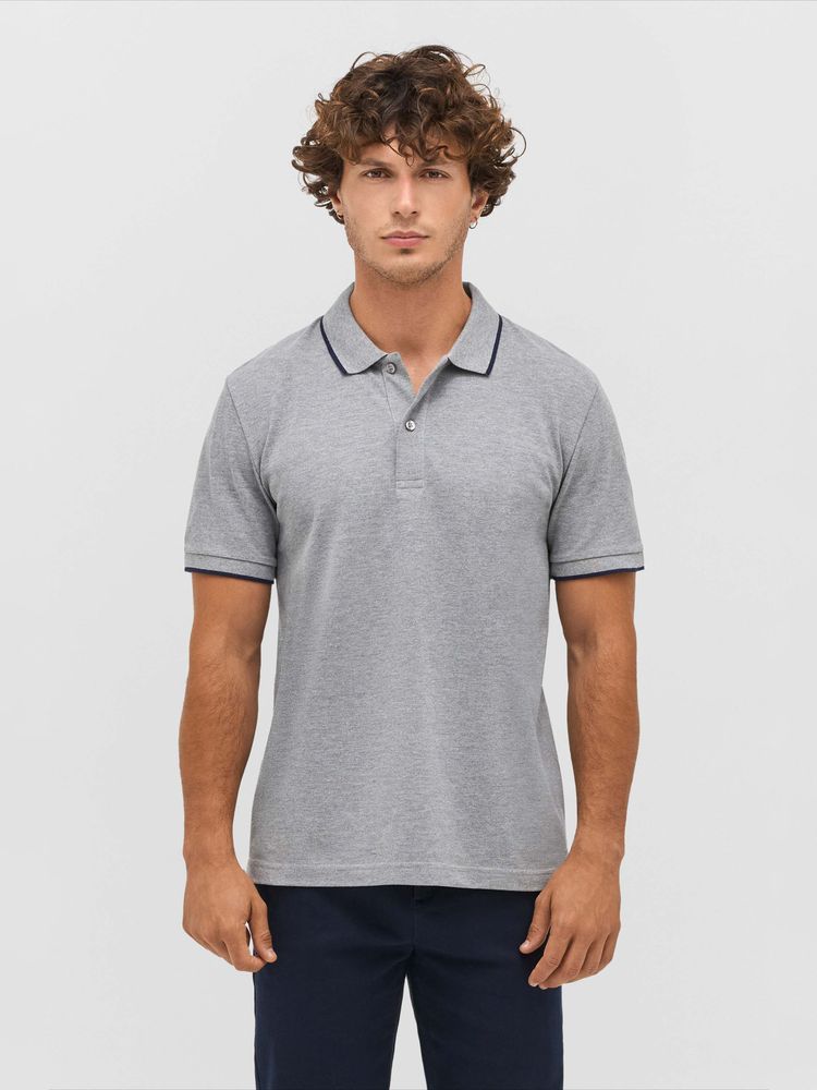 Рубашка поло унисекс Palermo, серый меланж с темно-синим купить оптом и в розницу с нанесением логотипа в Москве