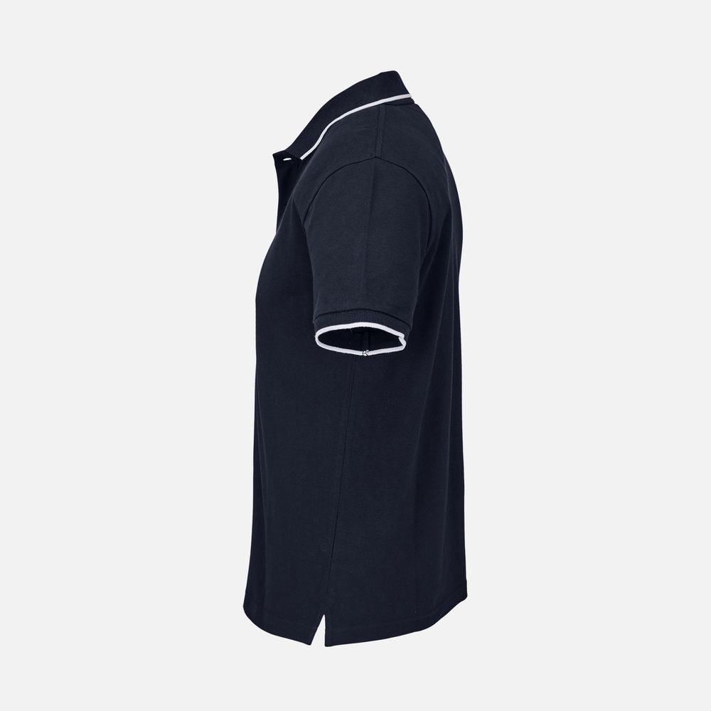 Рубашка поло унисекс Palermo, темно-синяя с белым купить оптом и в розницу с нанесением логотипа в Москве