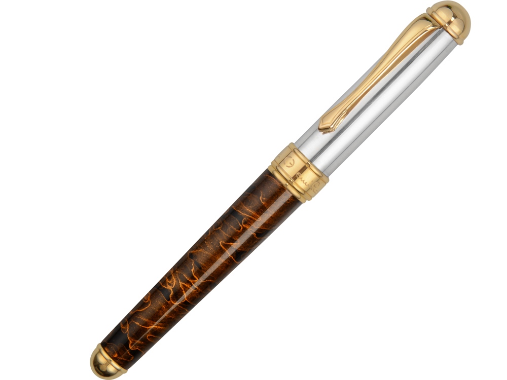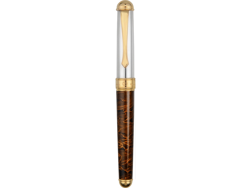 Роскошная перьевая ручка сделана из латуни с посеребрением и полированного панциря черепахи. Стильный дизайн и идеальное сочетание различных материалов делает эту ручку незаменимым помощником делового человека.