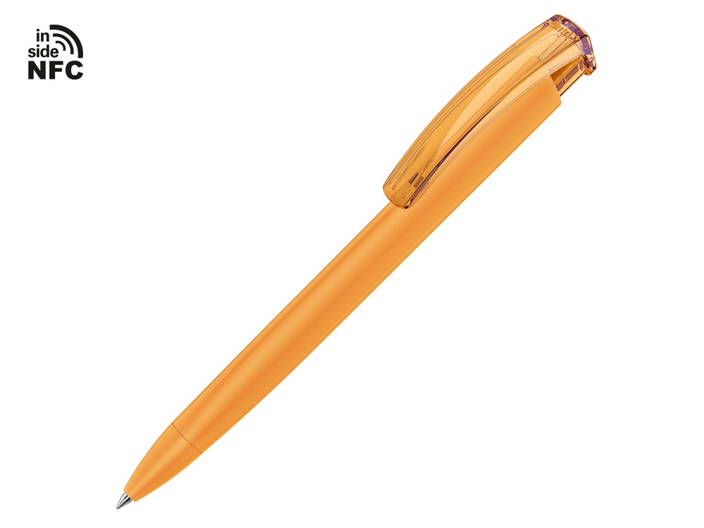 Пластиковая шариковая ручка Trinity K transparent Gum soft-touch с чипом передачи информации NFC обеспечивает быстрый доступ к рекламной информации. Для передачи данных посредством технологии NFC смартфон или планшет, которые поддерживают данную технологию, необходимо поднести к запрограммированной на ручке метке NFC (метка расположена под логотипом NFC). После этого на смартфоне или планшете откроется запрограммированная ссылка на сайт, ролик или начнется загрузка другой информации (заранее загруженной в сеть интернет). Таким образом метка работает как код, при чтении которого смартфон или планшет открывает определенную программу, активирует функцию или ссылку. Можно запрограммировать на метке NFC адрес сайта, каталог и другие рекламные материалы и раздавать вместо визиток. Метка NFC активирует одно действие на смартфоне или планшете. Внимание, программирование метки производится только компанией UMA. Если вы разместили заказ на ручку с меткой, но не прислали информацию, которую необходимо на нее записать, в заказе может быть отгружена ручка без чипа NFC.