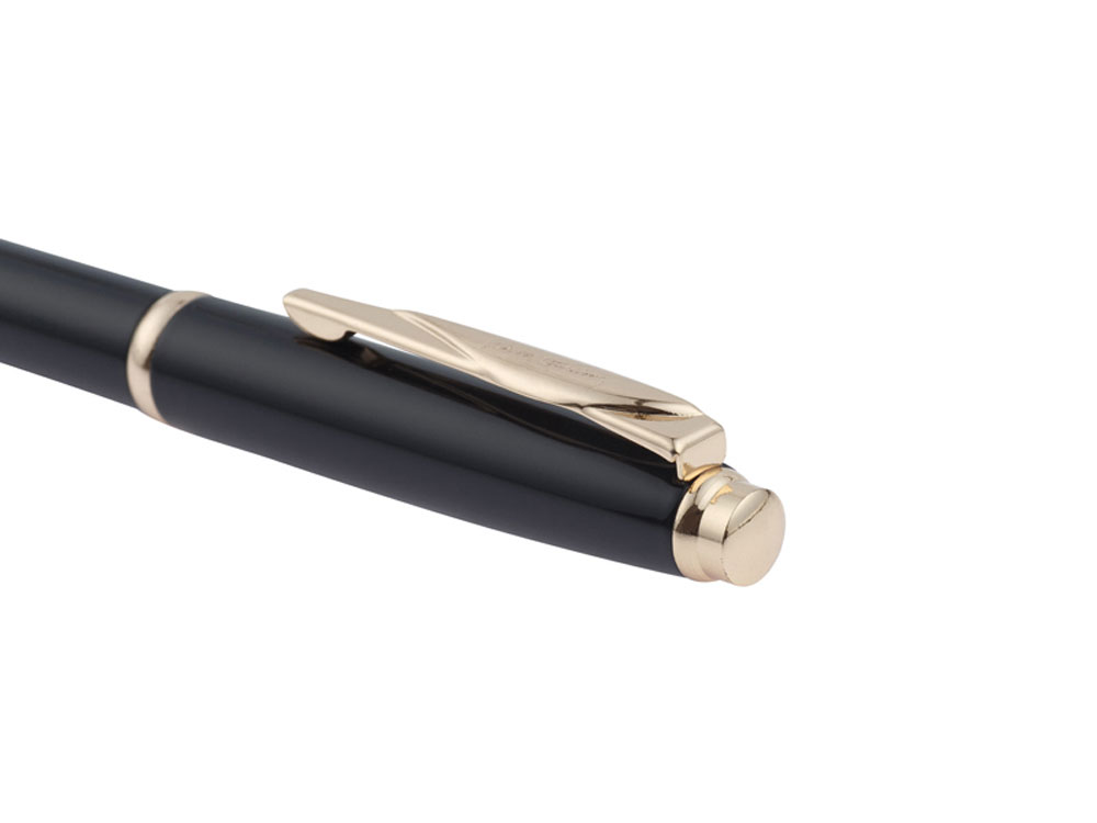 Шариковая ручка Pierre Cardin GAMME Classic • Корпус - латунь. Цвет - черный; • Отделка - лакированное покрытие; • Детали дизайна - сталь/позолота; • Упаковка - картонная коробочка черного цвета с картонным ложементом красного цвета; • Размер упаковки -175 х 55 х 35 мм, вес 35 гр Комплектация: • Металлический шариковый стержень с логотипом Pierre Cardin на корпусе с чернилами синего цвета; • Инструкция по использованию ручки. Ручки Pierre Cardin серии GAMME Classic имеют классическую форму и представлены в самых основных корпоративных цветах: черный, красный, синий, серебристый или стальной. Специально подобранные элементы дизайна золотистого и серебристого цветов выгодно подчеркивают стиль каждой модели. Толщина пишущего узла (толщина линии) - 0,9 мм Диаметр шарика - 1 мм