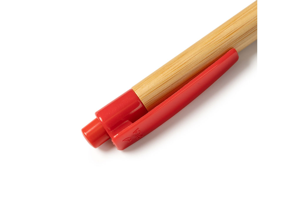 Ручка шариковая GILDON, бамбук, натуральный/красный купить оптом и в розницу с нанесением логотипа в Москве