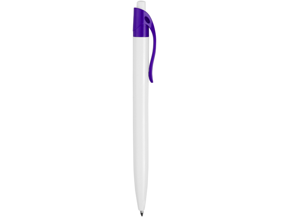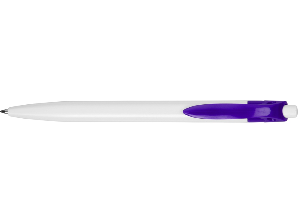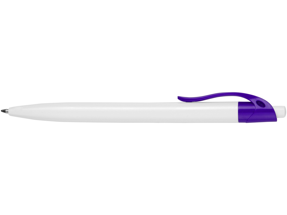 Стильная пластиковая ручка с ярким цветным клипом и белым корпусом отлично подойдет для нанесения логотипов и рекламной информации.