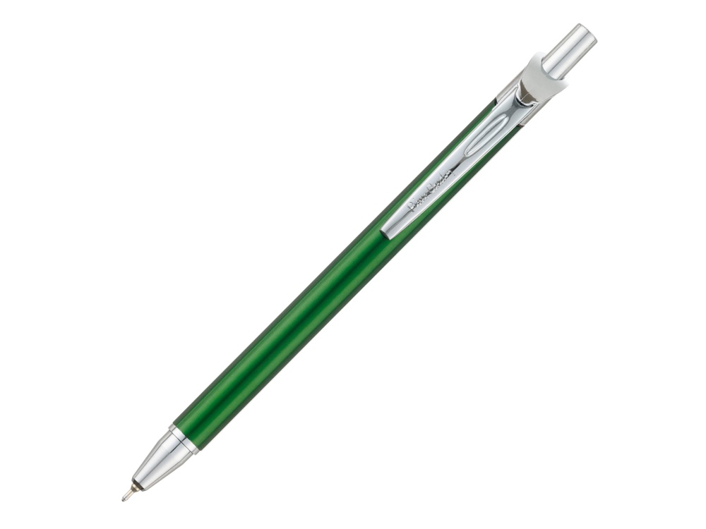 Шариковая ручка Pierre Cardin Actuel. • Корпус - алюминиевый. Клип - сталь. Цвет - зеленый; • Отделка - глянцевое цветное покрытие; • Детали дизайна - пластик с хромированным покрытием; • Упаковка - пластиковая коробочка с пластиковым ложементом с муфтой черного цвета; • Размер упаковки - 158 х 37 х 19 мм, вес 28 гр Комплектация: • Металлический шариковый стержень с логотипом Pierre Cardin на корпусе, с чернилами синего цвета; • Инструкция по использованию ручки. Серия ручек Pierre Cardin ACTUEL – это легкие и удобные шариковые ручки с современным дизайном и широким ассортиментом отделок. Разнообразие форм, цветов, механизмов отражают динамичный ритм жизни, новые возможности и перспективы. Успех во всех начинаниях гарантирован! Главное, не останавливаться!
