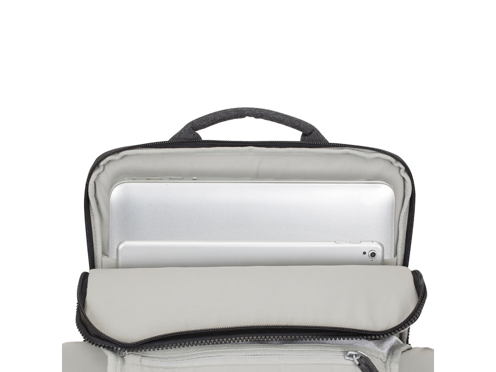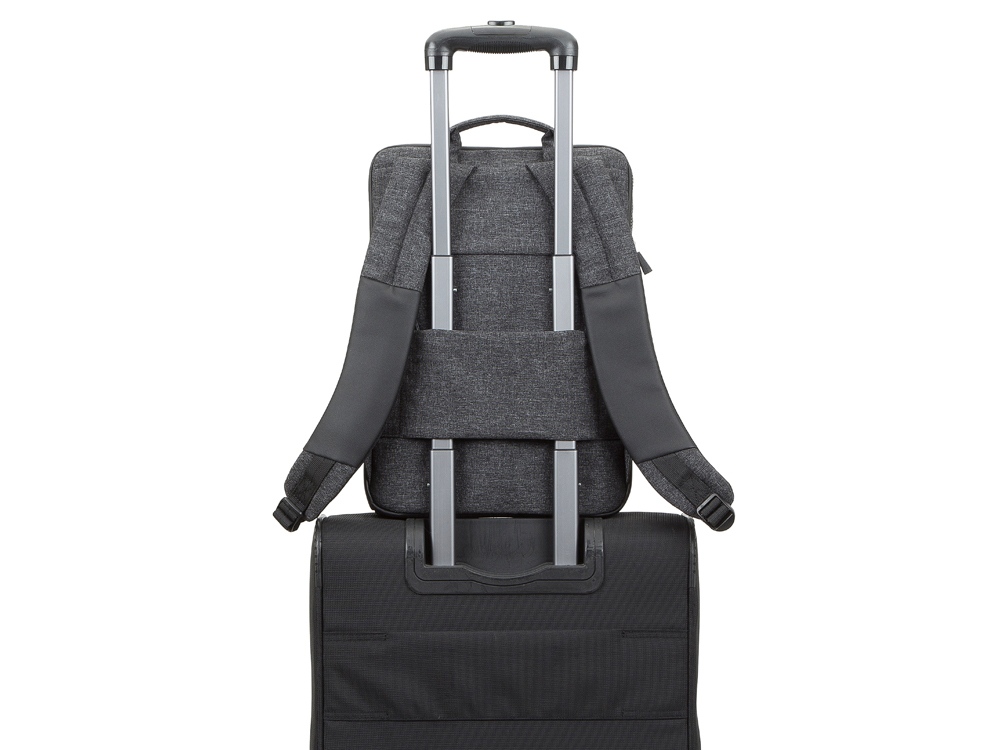 Рюкзак для MacBook Pro 15 и Ultrabook 15.6. Описание: • Рюкзак для деловых поездок. • Изготовлен из плотной искусственной кожи и полиэстера для защиты ноутбука от случайных ударов и царапин, а также от пыли и влаги. • Отделение для ноутбука защищено водостойкой молнией, имеет мягкие стенки, карман для планшета до 10.1. Дно имеет дополнительную мягкую вкладку для защиты гаджета. • Передний карман на молнии для хранения аксессуаров, зарядного устройства, авторучек, смартфона. • Внутреннее пространство разделено на отделение для документов, два кармана на молнии и карман для воды или зонта. • Удобная мягкая ручка для переноски и наплечные ремни со смягчающими подкладками помогут чувствовать себя комфортно в самом долгом путешествии. • На задней стенке имеется ремень крепления к багажной сумке и скрытый карман на молнии для смартфона, бумажника. • Специальная система крепления ремешков на липучке закрепляет их и создает дополнительное удобство. Размер отделения для ноутбука: 270 x 385 x 35 мм.