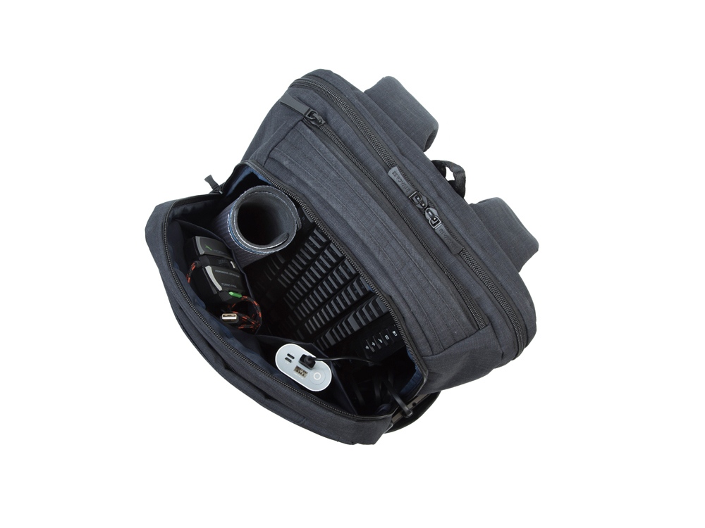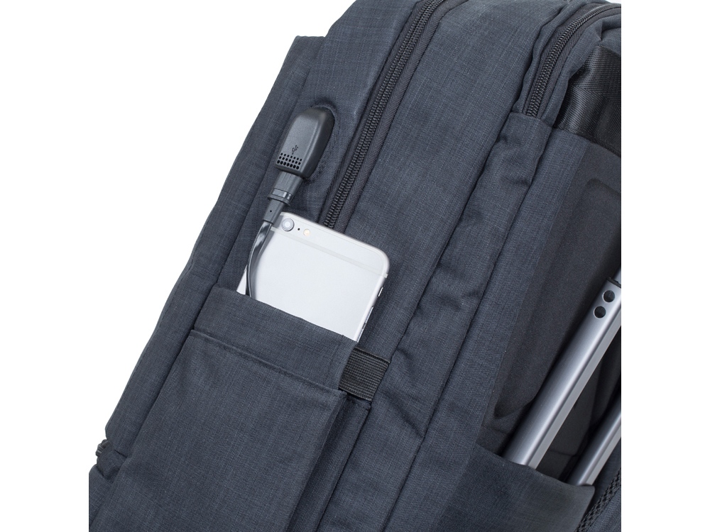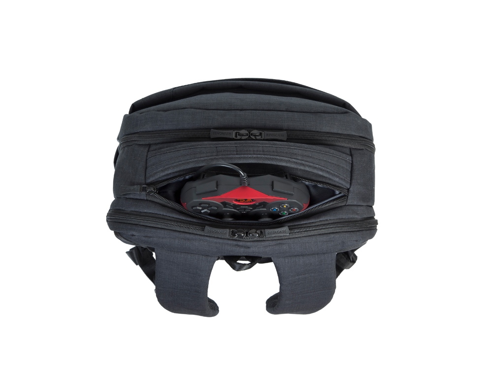 Рюкзак для ноутбука до 17.3''. • Рюкзак для геймеров, идеально подходит для деловых поездок и туристических путешествий. • Основное отделение для ноутбука с вертикальной загрузкой, имеет мягкие стенки, утолщенное дно и дополнительное внутреннее отделение для планшета до 10.1. • Просторная секция на молнии для хранения всех необходимых игровых аксессуаров - наушники, мышь, коврик, клавиатура. • На боковой стороне рюкзака имеется USB-порт для подключения портативного внешнего аккумулятора. • Два передних кармана на молнии и один на велкро для хранения аксессуаров, зарядного устройства, визитных карт, авторучек, смартфона, документов. • Удобная мягкая ручка для переноски и наплечные ремни со смягчающими подкладками обеспечивают комфорт даже во время самого долгого путешествия. • Эргономичная спинка рюкзака обеспечивает циркуляцию воздуха для максимального комфорта вашей спины. • На задней стенке имеется ремень крепления к багажной сумке и скрытый карман на молнии для паспорта, бумажника. • Боковой карман для ёмкости с водой.