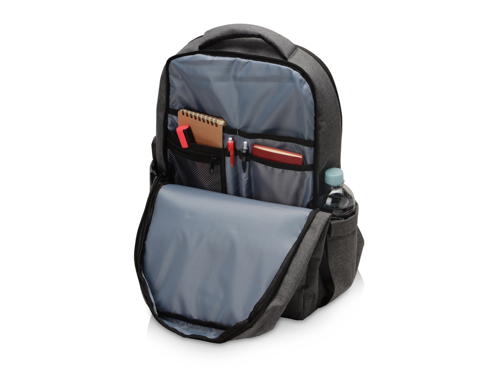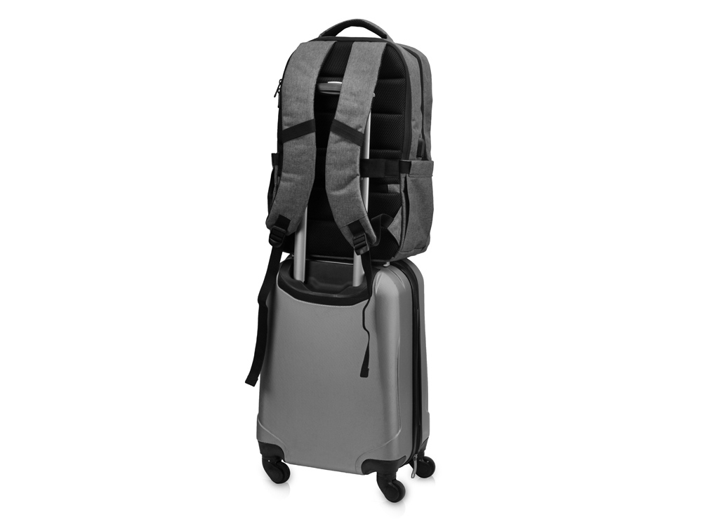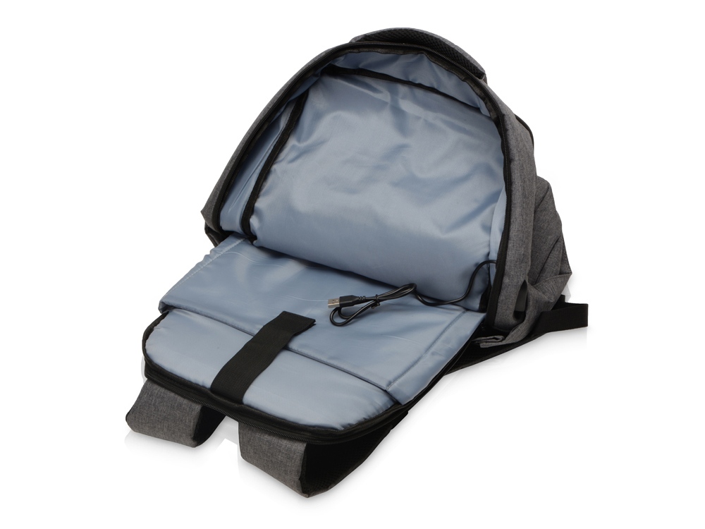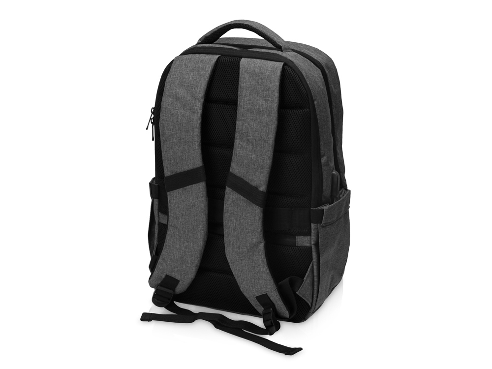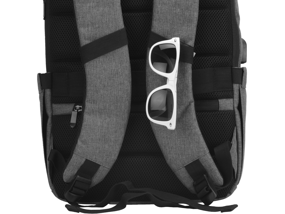 Удобный рюкзак для делового человека с двумя вместительными отделениями, в котором предусмотрено все до мелочей: - отделение с карманом для ноутбука 15.6' - отделение с органайзером - наружный карман на молнии -затрудненный несанкционированный доступ к отделению для ноутбука и планшета благодаря тому, что молния смещена к спинке - задний потайной карман с молнией на спинке - 2 боковых кармана на резинках, что позволяет им регулироваться по ширине под бутылки разного диаметра - ремень для крепления к чемодану - USB выход - дышащая сетчатая спинка - регулируемые по длине лямки