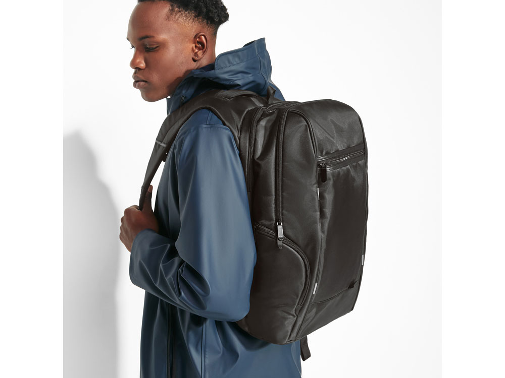 Рюкзак из нейлона. Мягкое внутреннее отделение идеально подходит для хранения вашего ноутбука. Мягкие лямки и спинка. USB-выход для подключения повербанка (не входит в комплект). Включает в себя кабель micro USB. Благодаря характеристикам и размеру рюкзака они идеально подходят для повседневного использования в офисе или для путешествий.