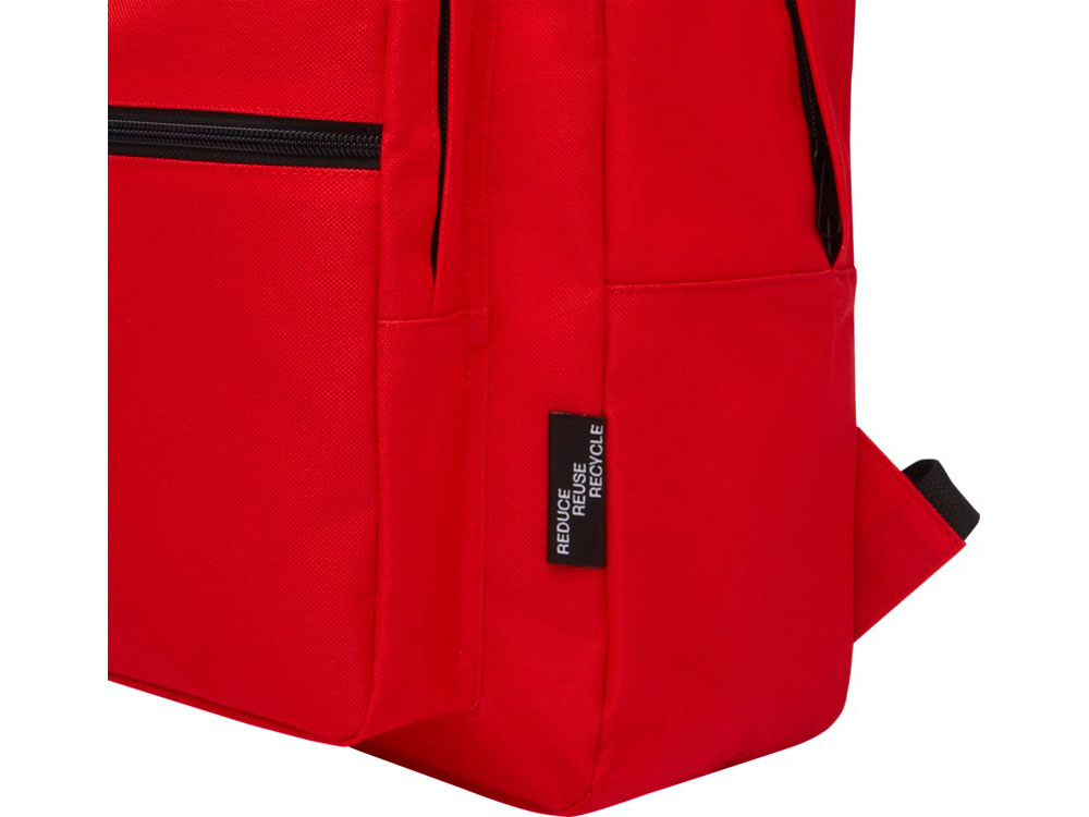 Прочный рюкзак, изготовленный на 100% из переработанного пластика, предназначенного для повторного использования, что способствует уменьшению количества пластиковых отходов. Имеет регулируемые плечевые ремни, 2 отделения на молнии и передний карман на молнии. Для изготовления этой сумки перерабатывается около 15 бутылок.