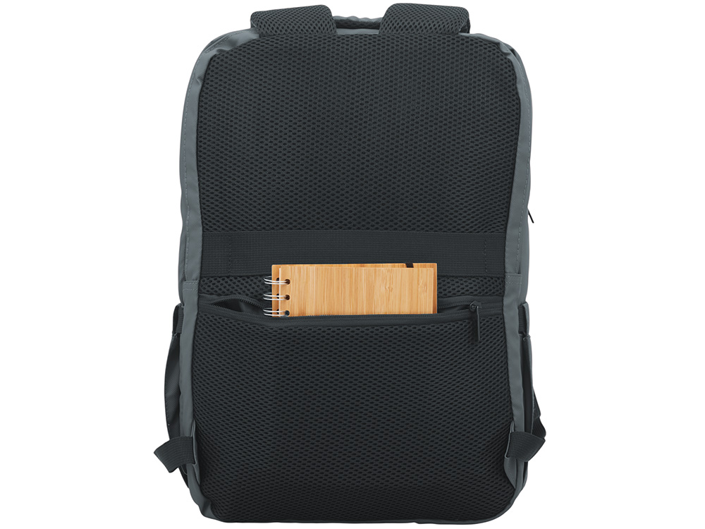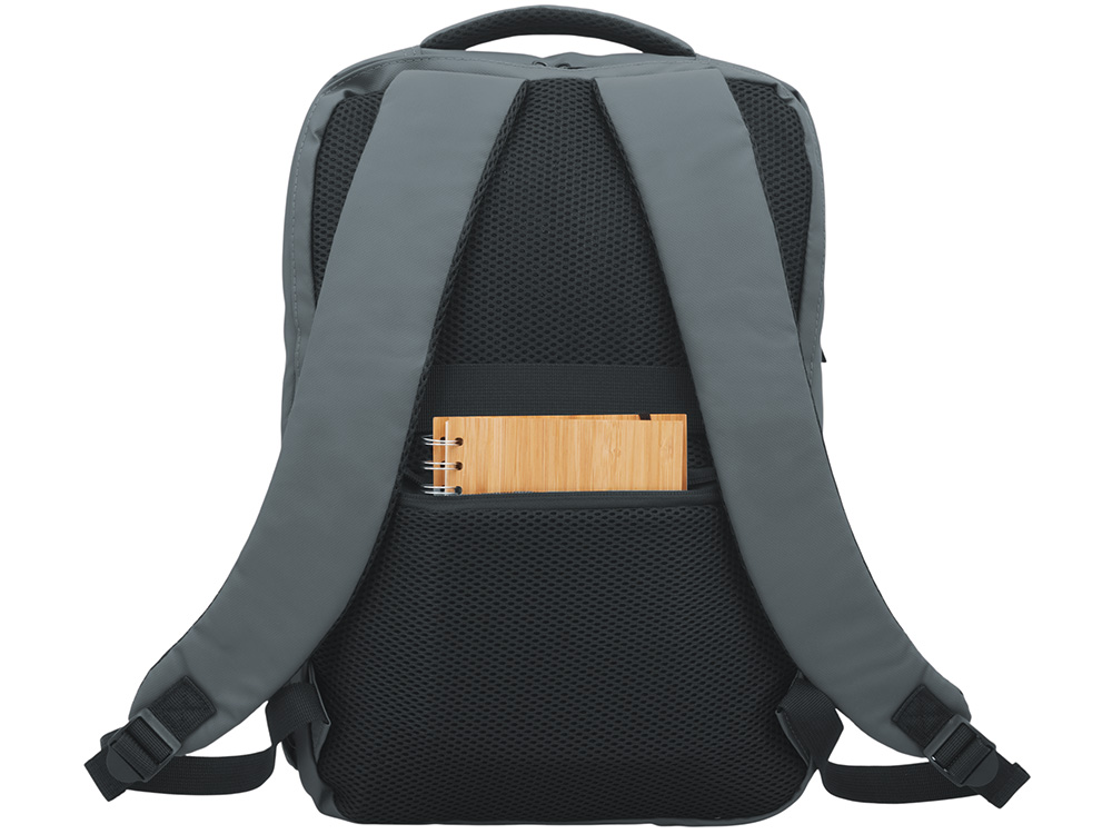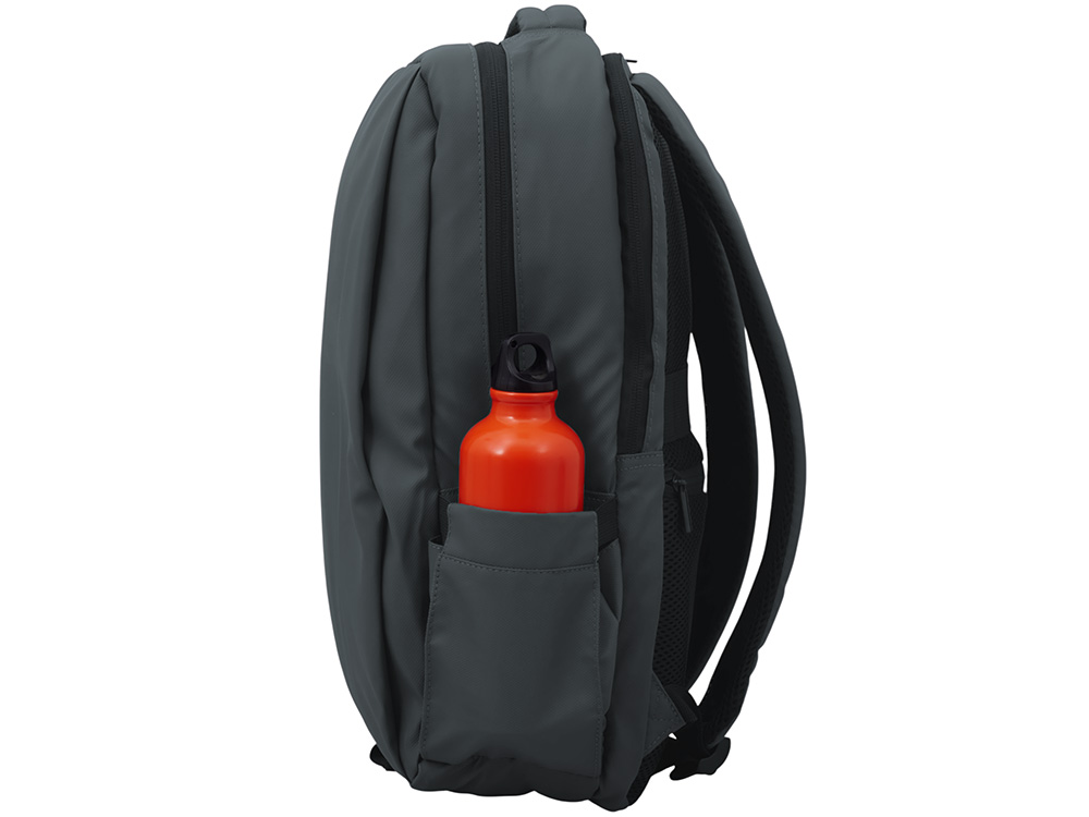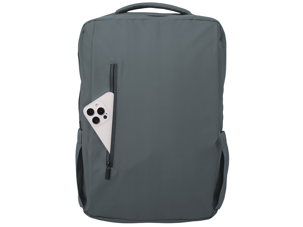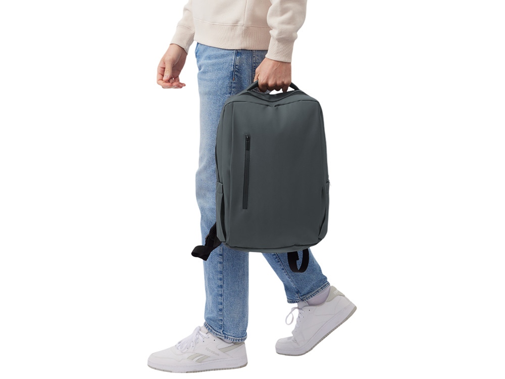 Непромокаемый бизнес рюкзак с двумя вместительными отделениями и карманом на молнии спереди. В одном отделении расположены карман для ноутбука и планшета, в другом органайзер и много пространства для одежды и других вещей на случай деловой поездки. На сетчатой спинке расположен потайной кармана на молнии для документов и личных вещей и ремень для крепления на ручку чемодана. Сверху удобная мягкая ручка для переноски. Лямки регулируются по длине.