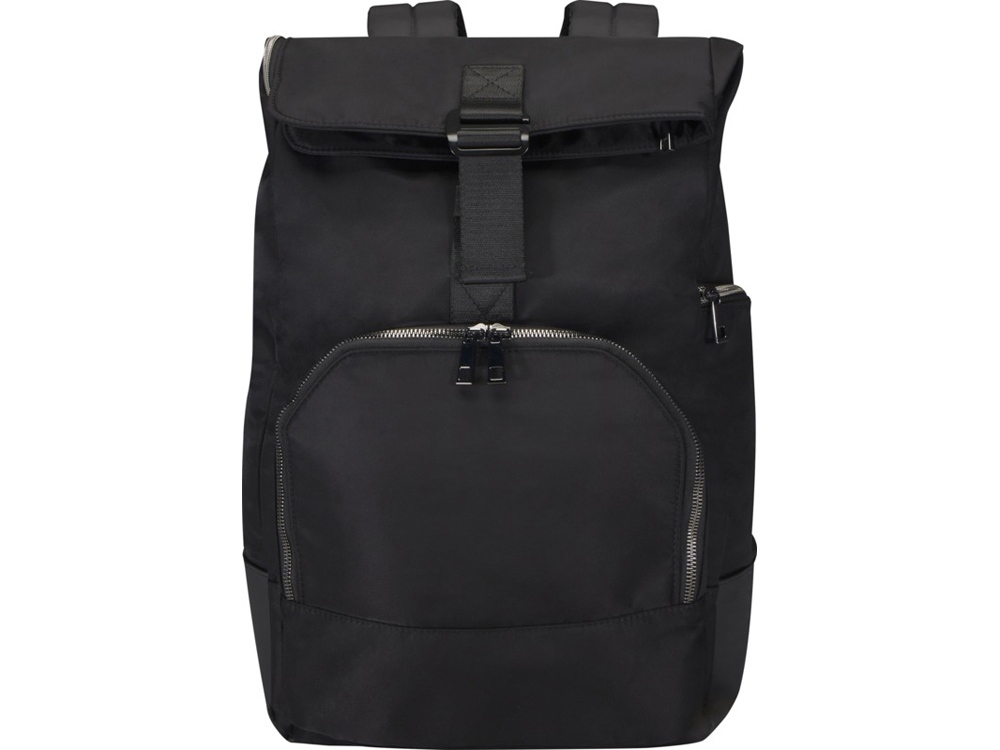 Рюкзак со сворачивающимся верхом Rhine позволит вам легко переключаться между работой и отдыхом благодаря своему элегантному стилю и универсальности. Изготовлен из высококачественного переработанного нейлона, сертифицированного согласно GRS, с мягкой подкладкой из переработанного РЕТ-пластика и элементами из высококачественной полиуретановой кожи. В рюкзаке имеется специальное отделение для ноутбука диагональю 15 дюймов с 2 дополнительными карманами для электронных аксессуаров, основное отделение с практичным входом на Г-образной молнии и 2 карманами, передний карман-органайзер на молнии и боковой карман. Наслаждайтесь максимальным комфортом при переноске благодаря мягким регулируемым плечевым ремням и верхней ручке с ПУ покрытием. Объем: 18 литр. Выдерживает вес до 10 кг. Не содержит ПВХ. GRS certified recycled nylon.
