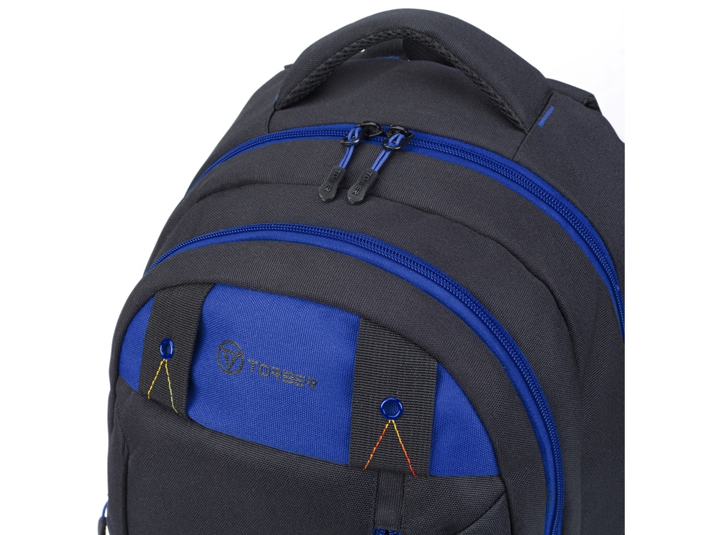 Рюкзак TORBER школьный серии CLASS X Функциональные особенности: Регулируемые продуваемые плечевые ремни Карман для бутылки Карман для зонтика Карман для планшета Мягкая спинка с продуваемыми воздушными каналами Вмещает ноутбук диагональю 15,6 Количество отделений - 2 Количество карманов - 5 шт: 1 - для ноутбука в основном отделении, 1 - для ключей и небольших аксессуаров на молнии в основном отделении, 1 - на молнии на внешней стороне рюкзака, 2 - боковых для зонтика/бутылки Материал: полиэстер 900D Размер: 45 x 32 x 16 см Объем: 17 л
