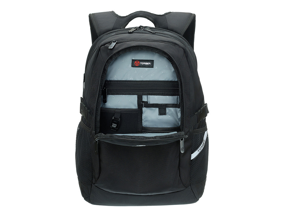 Рюкзак TORBER серии МЕГАПОЛИС с отделением для ноутбука 16 Функциональные особенности: - Регулируемые плечевые ремни - Эргономичная спинка с системой циркулирования воздуха - Возможность крепления на телескопическую ручку чемодана - Отделение для ноутбука диагональю 16 - Карман для планшета - Сетчатый карман на молнии в основном отделении - Карман для бутылки - Карман для зонтика - Карман для очков - Органайзер Материал: полиэстер 900D Размер: 34 х 47 x 28 см Объем: 30 л