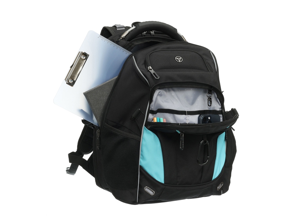 Рюкзаки TORBER серии XPLOR — многофункциональные, вместительные, со множеством карманов и удобной мягкой спинкой — станут незаменимыми помощниками в любом путешествии. Жизнь в городских джунглях, вылазки на природу, покорение дальних регионов и новых вершин станут комфортнее и проще, а впечатления ярче и насыщеннее. Наличие отделения для ноутбука с диагональю экрана до 15 обеспечивает безопасную и удобную переноску вашего ноутбука. Карман-органайзер предназначен для мелких предметов, также есть кольцо для ключей, кармашки для ручек, мобильного телефона и других аксессуаров. Спинка и эргономичные плечевые ремни обладают анатомической формой и системой циркуляции воздуха. Внешний карман на молнии с встроенным ударопрочным очешником надежно защитит ваши очки от повреждений. Карман для зонта или бутылок из специальной эластичной сетки подходит для ёмкостей любого размера. Объем в 34 л дает вам возможность взять с собой всё необходимое. Рюкзак выполнен в черном цвете с бирюзовыми вставками, что делает его практичным и красивым. Функциональная организация: - Отделение с мягкими стенками подходит для большинства ноутбуков с диагональю экрана до 15'' - Карман-органайзер включает ключницу и многочисленные кармашки для пишущих принадлежностей, мобильного телефона и других аксессуаров - Внутренний сетчатый карман в основном отделении - Специальный ремень на спинке позволяет зафиксировать рюкзак на телескопической ручке чемодана для удобного перемещения нескольких предметов багажа одной рукой - Встроенный футляр для хранения очков с ударопрочным очешником защищает очки от повреждений - Эргономичные плечевые ремни анатомической формы обеспечивают максимальное удобство в использовании рюкзака - Спинка рюкзака с системой циркуляции воздуха имеет специальную рельефную поверхность, обеспечивает удобное прилегание к спине и вентиляцию - Прочная ручка с металлическим тросом в основании - Боковые карманы подходят для хранения бутылок с водой и зонта - Карабин на передней части рюкзака