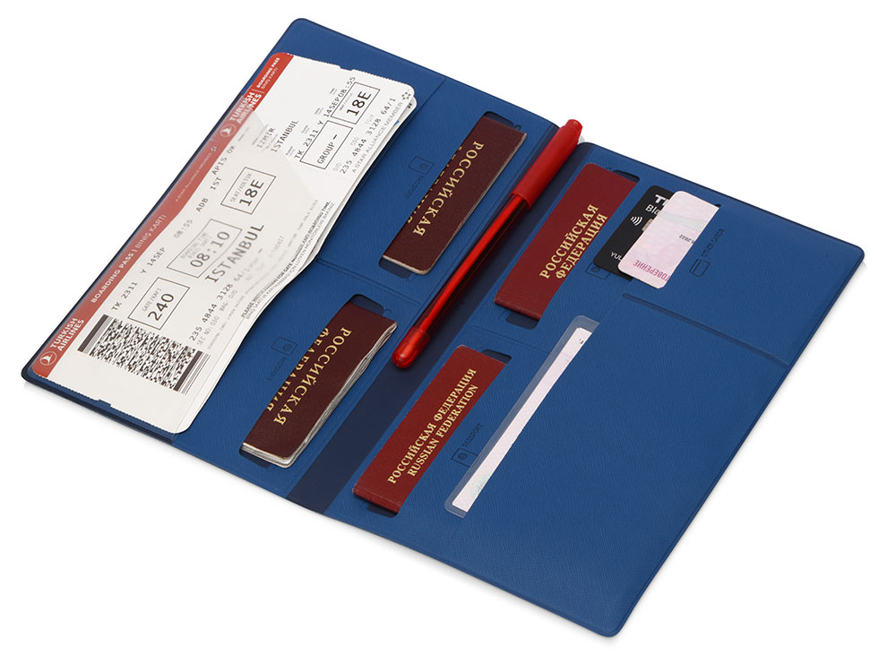 Вместительный и стильный органайзер для документов незаменим в путешествии. Выполнен из качественного материала. Экокожа приятна на ощупь и имеет различные расцветки. Внутри имеется восемь карманов, которые позволяют вместить документы для семьи из четырех человек. Документы аккуратно разложены и не утратят свою форму. Благодаря своим преимуществам органайзер для путешествий становится не только отменным подарком, но и эффективным рекламным средством.