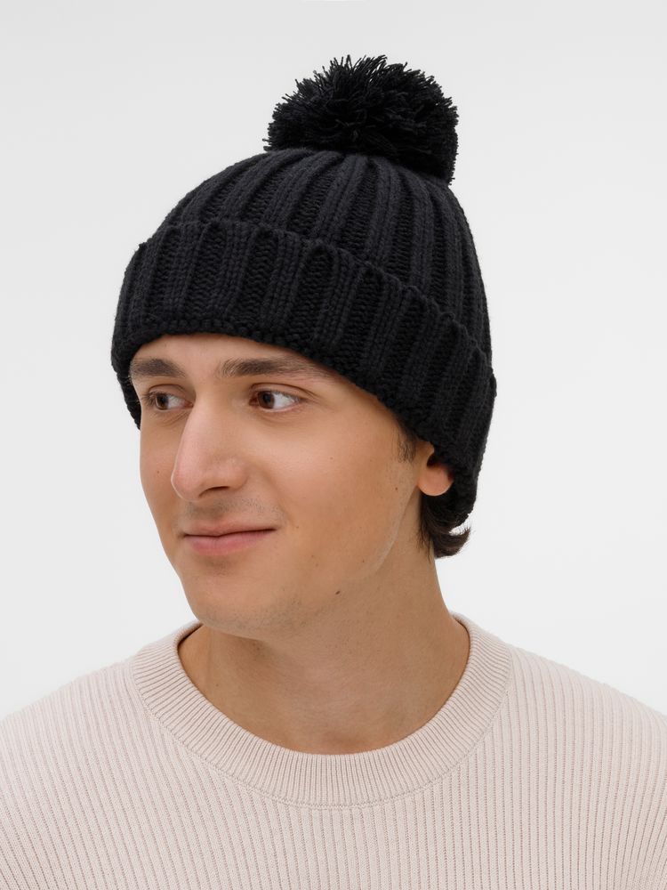 Шапка HappyGo, черная купить оптом и в розницу с нанесением логотипа в Москве