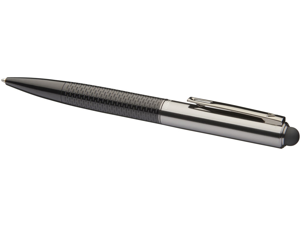 Шариковая ручка-стилус Dash. Шариковая ручка со стильным покрытием внизу корпуса. Эксклюзивный дизайн. В комплекте черный стержень высокого качества. Упакована в коробку Marksman. Металл.