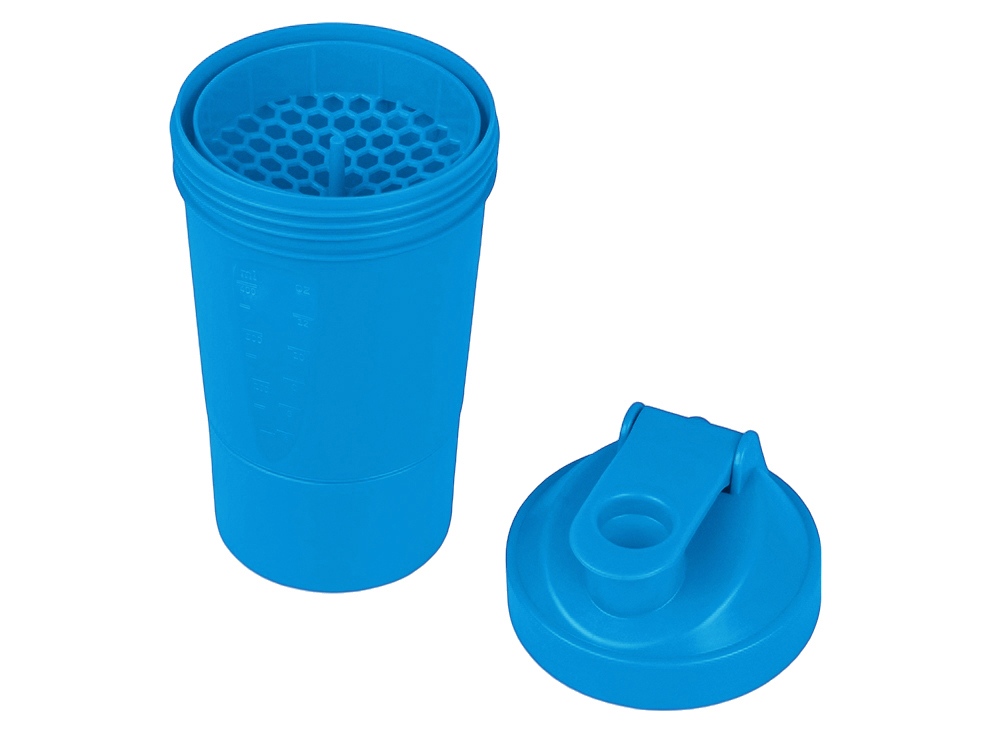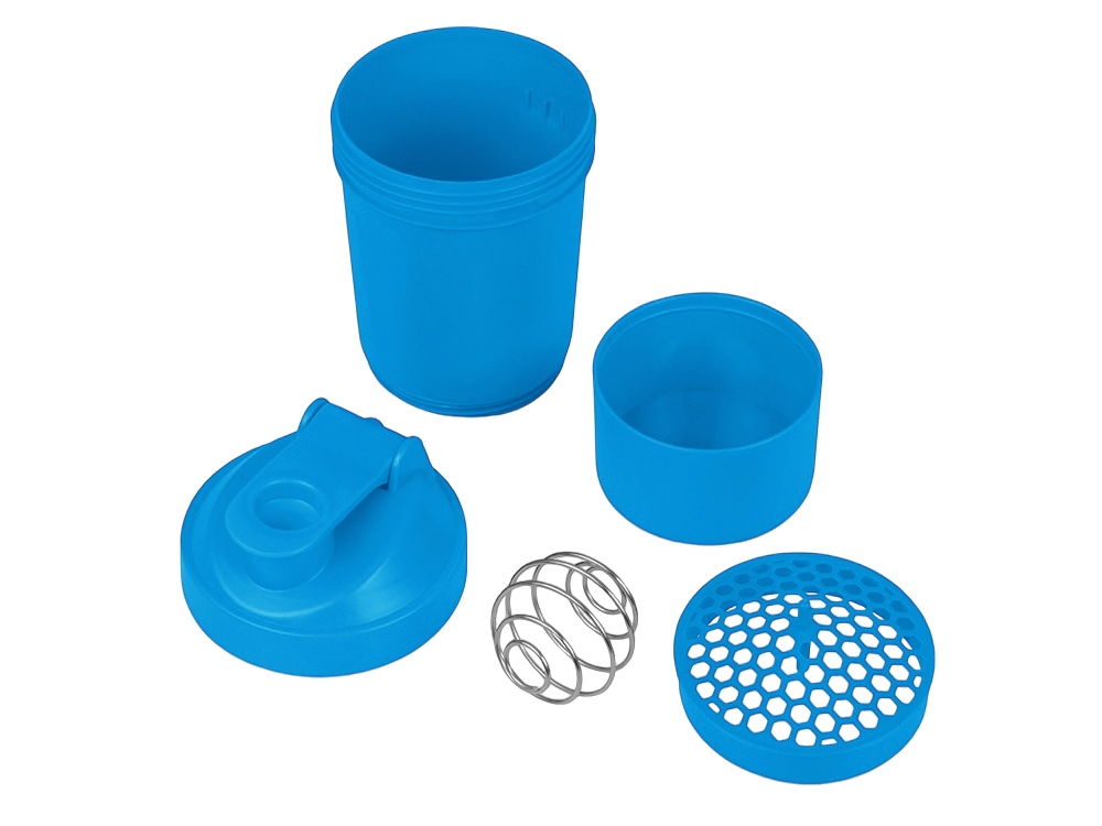 Шейкер для спортивного питания - это один из необходимых аксессуаров для спортсменов и людей, ведущих активный образ жизни. В нем можно приготовить протеиновый коктейль или фруктовый напиток. Шейкер классической формы, он удобно лежит в руке, к донышку прикручивается емкость для смешивания (таблетница), в которой можно хранить спортивные добавки: протеиновый порошок, витамины и другие концентраты. Внутри колбы имеется пластиковая сетка, чтобы процеживать спортивный напиток, а также металлический размешиватель, который растворяет порошок в напитке без комочков. Объем - 400мл. Шейкер изготовлен из пищевого пластика, он герметичен и легко моется. Шейкер имеет приятное на ощупь матовое покрытие, но подверженное незначительным дефектам (царапинам). Шейкер с нанесением - это классный и полезный спортивный подарок для коллеги, руководителя и сотрудников компании.