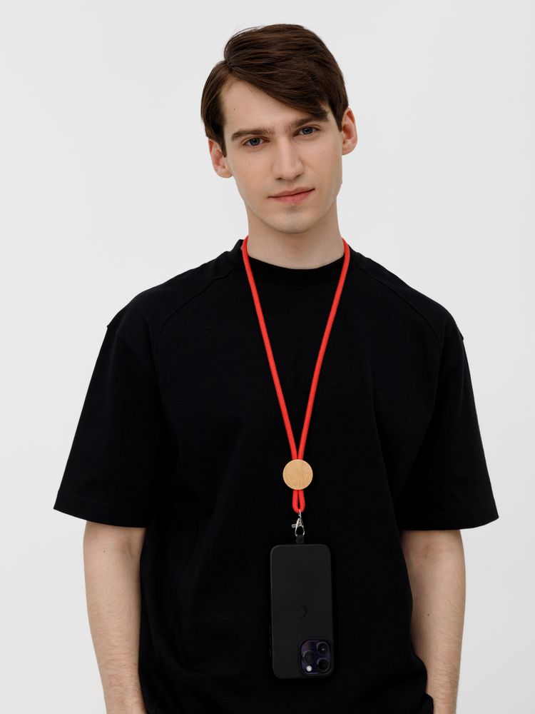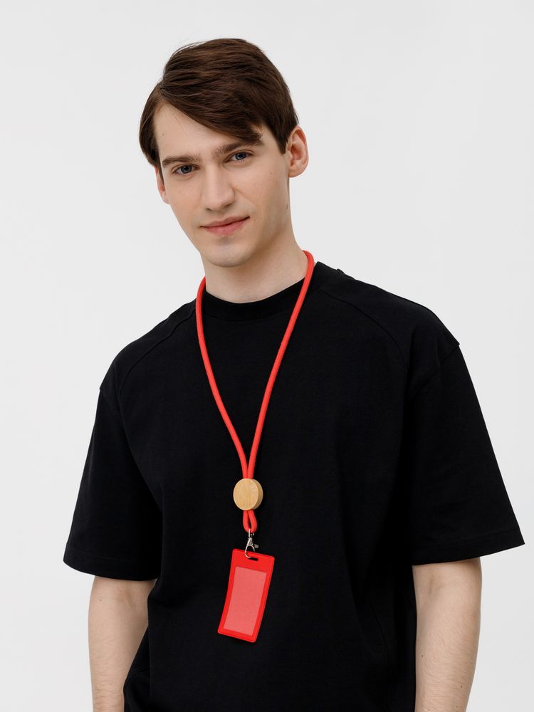 Шнурок для бейджа Tube Wood, красный купить оптом и в розницу с нанесением логотипа в Москве