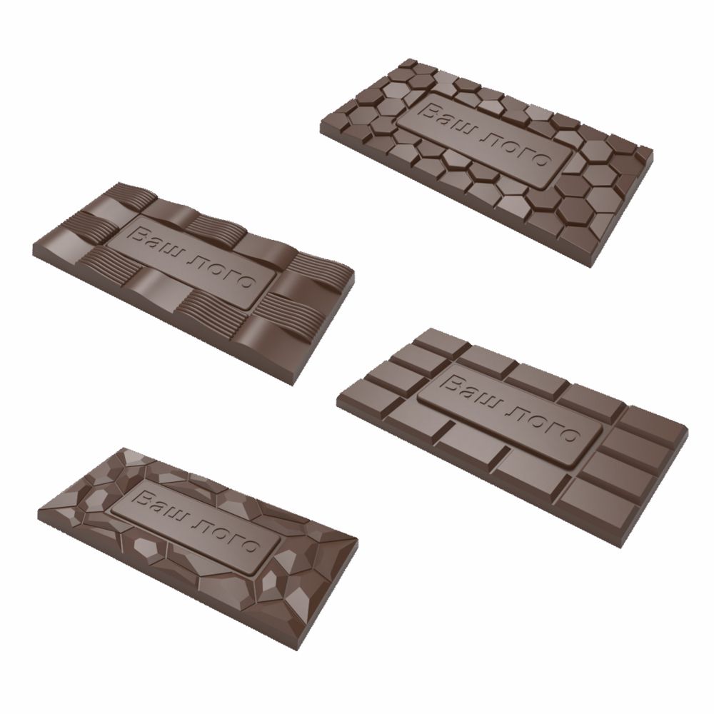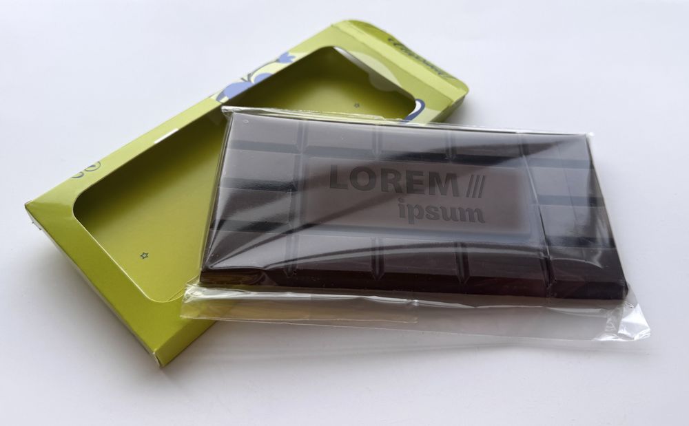 Барельефный шоколад с логотипом в индивидуальной упаковке с окошком.
