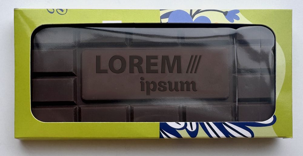 Окошко позволяет увидеть шоколад не открывая коробку. Полноцветная печать упаковки выполняется по вашему дизайн-макету.