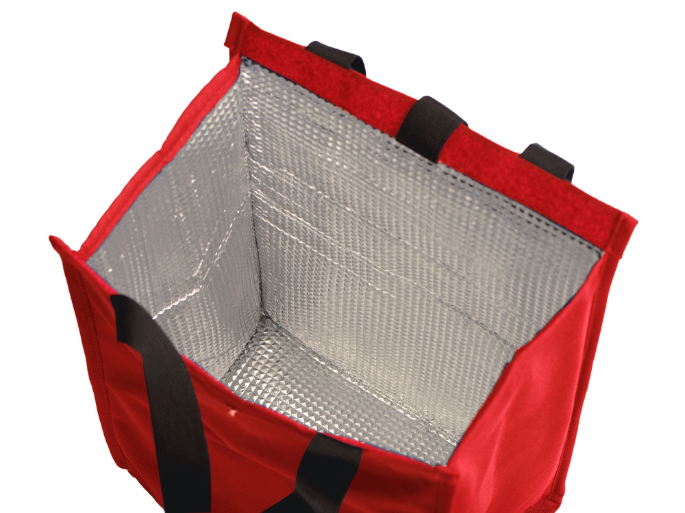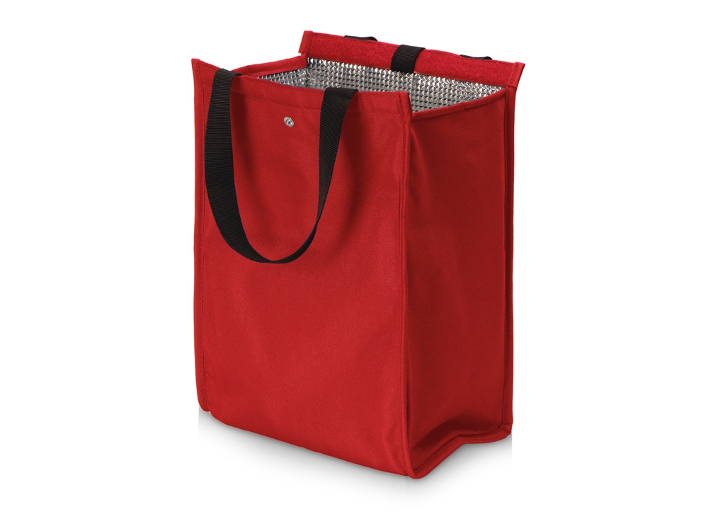 Вместительная сумка-холодильник, в том числе подходящая для винных бутылок. Внутренняя подкладка из пены толщиной 2 мм. Закрывается на плотную липучку. Складывается и застегивается на кнопку. Удобные прочные ручки для переноски.