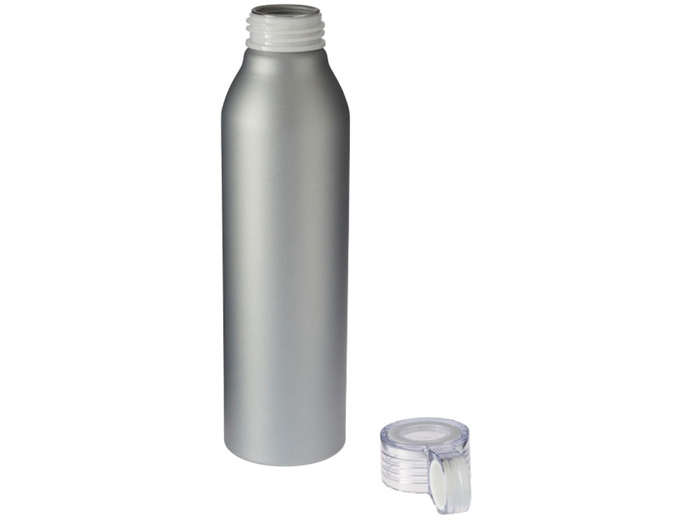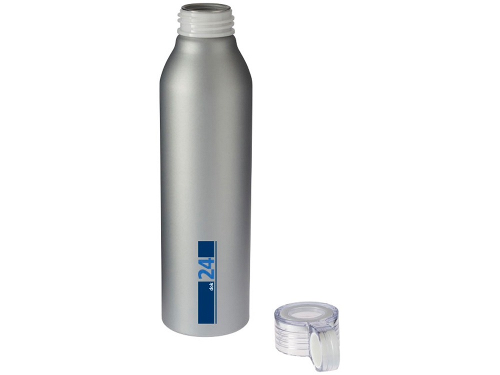 Спортивная алюминиевая бутылка Grom. Одинарные стенки. Откручивающаяся крышка с защитой от протекания и цветным акцентом. Удобная в пути. Объем 650 мл. Алюминий.