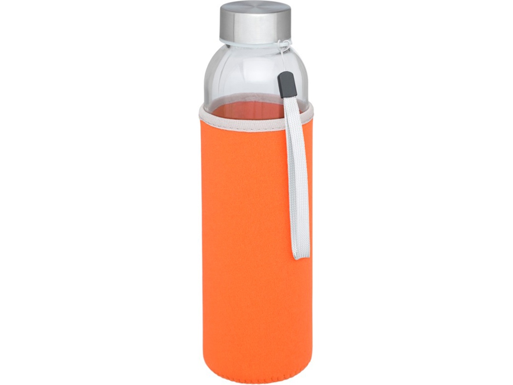 Стеклянная бутылка с одинарными стенками и съемной крышкой. На крышке есть ремешок для легкой переноски, кроме того имеется чехол из неопрена. Рекомендуется использовать для холодных напитков. Не замораживать, не разогревать в микроволновой печи. Объем 500 мл. Уложена в подарочную коробку.