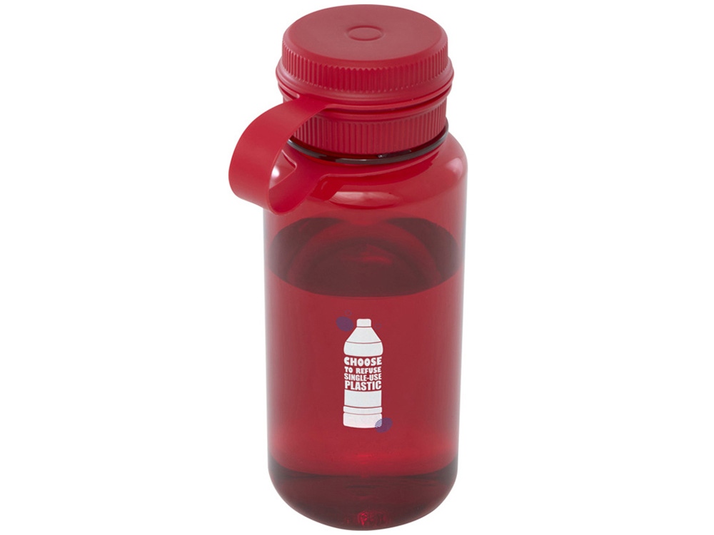Одностенная спортивная бутылка, изготовленная из переработанного ПЭТ-пластика, сертифицированного RCS, с завинчивающимся верхом, герметичной крышкой и удобной ручкой для переноски, встроенной в крышку. Конструкция с двумя отверстиями для легкой очистки и наполнения. В соответствии с одобренным EFSA (Европейским агентством по безопасности пищевых продуктов) процессом переработки ПЭТ. Объем: 900 мл. Переработанный PET пластик.