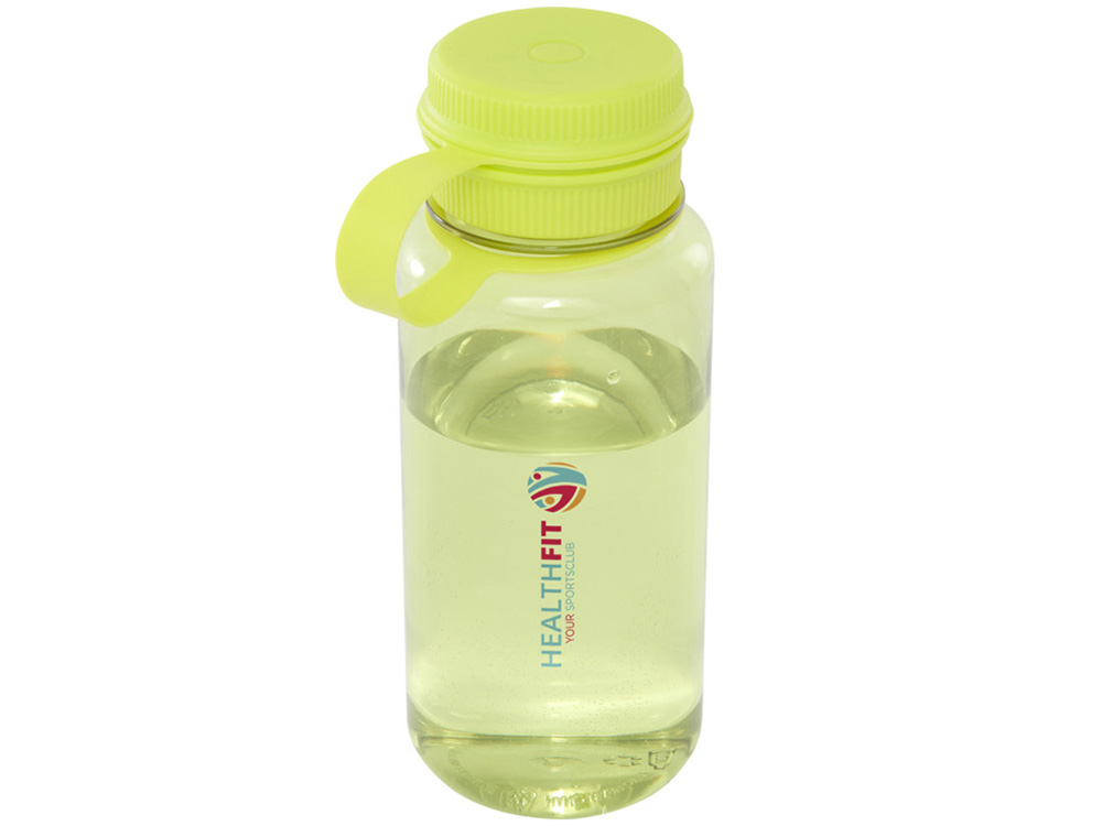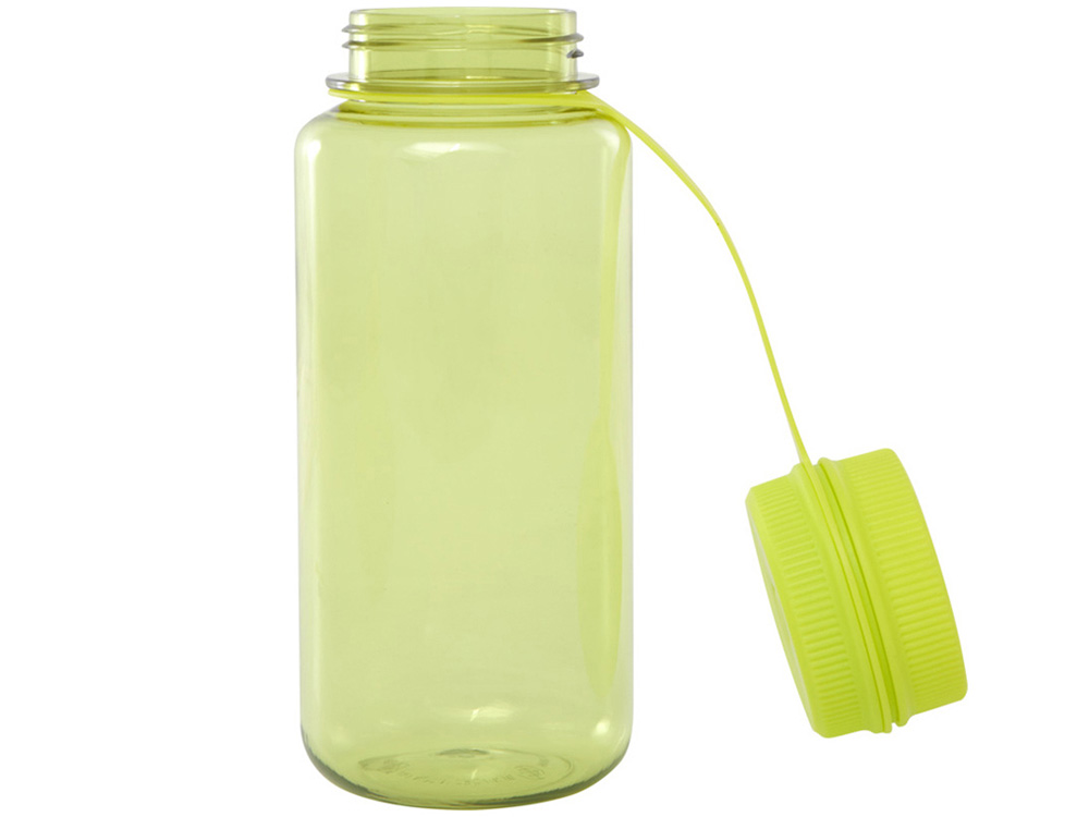 Одностенная спортивная бутылка, изготовленная из переработанного ПЭТ-пластика, сертифицированного RCS, с завинчивающимся верхом, герметичной крышкой и удобной ручкой для переноски, встроенной в крышку. Конструкция с двумя отверстиями для легкой очистки и наполнения. В соответствии с одобренным EFSA (Европейским агентством по безопасности пищевых продуктов) процессом переработки ПЭТ. Объем: 900 мл. Переработанный PET пластик.