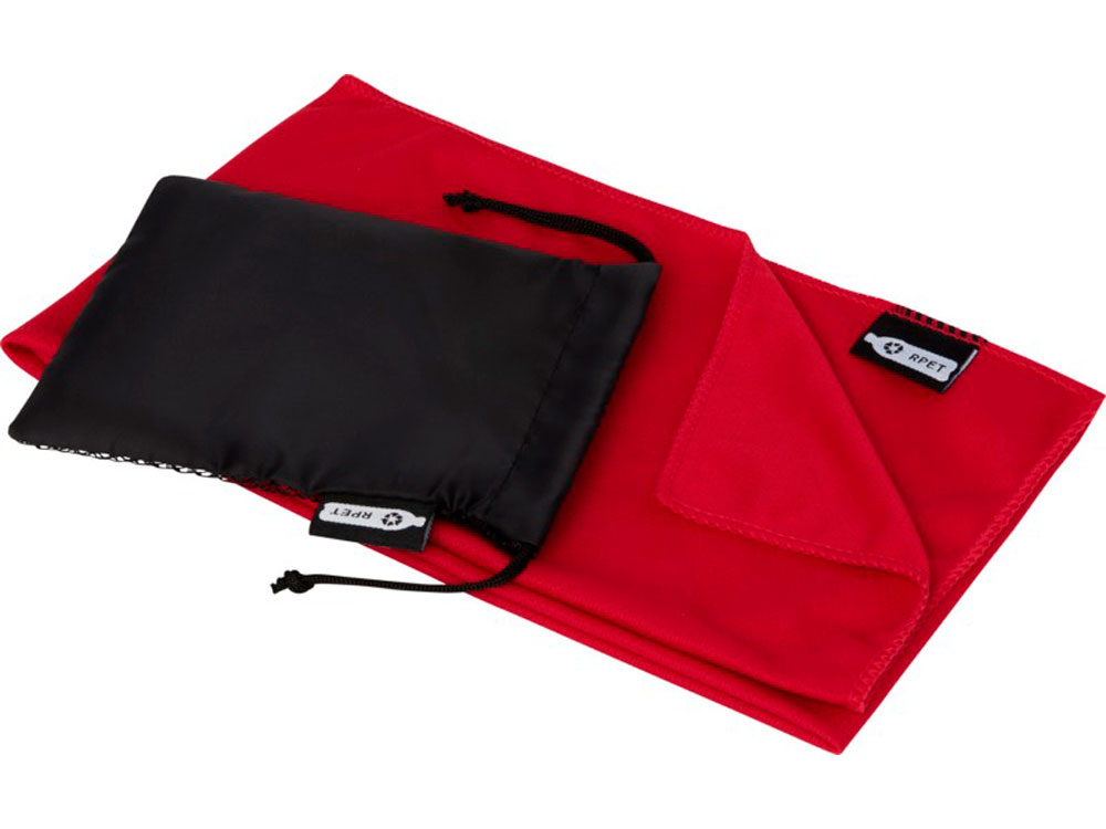 Спортивное охлаждающее полотенце Raquel из переработанного ПЭТ в мешочке, красный купить оптом и в розницу с нанесением логотипа в Москве