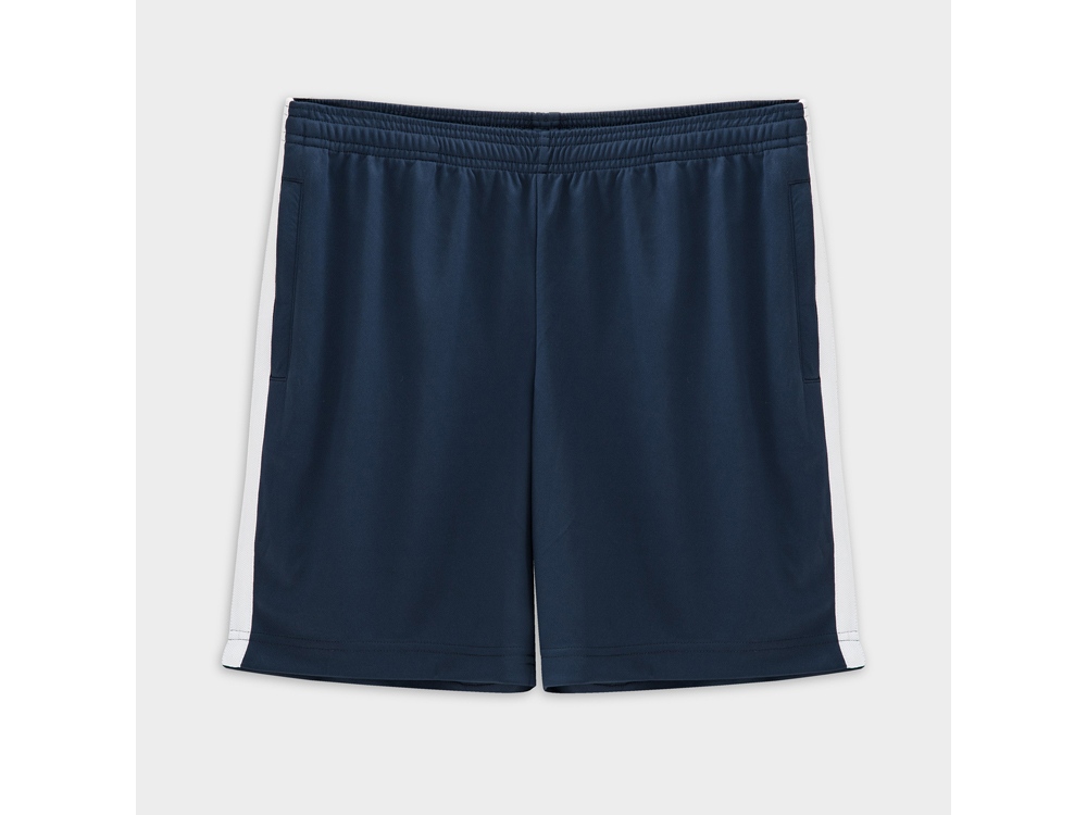 Спортивные шорты. Боковые карманы застегиваются на молнию. Эластичный пояс с контрастным регулируемым шнурком. Легкий и дышащий материал, подкладка из сетки. Контрастные лампасы в боковых швах.