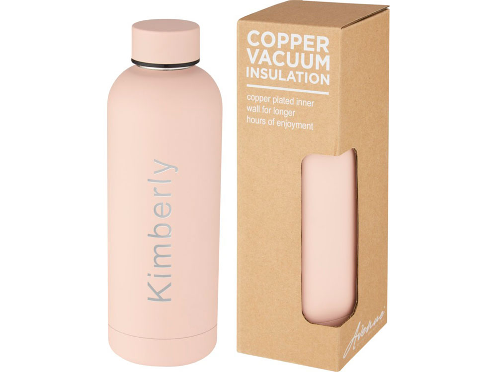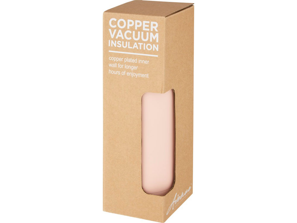 Нержавеющая медная бутылка с вакуумной изоляцией и простым дизайном. Изолированная конструкция из нержавеющей стали 18/8 предотвращает образование конденсата на внешней стороне бутылки, а модная финишная отделка порошковым напылением делает ее чрезвычайно прочной. Не содержит БФА, испытана и одобрена в соответствии с немецким законодательством о безопасности пищевых продуктов (LFGB). Проверена на содержание фталатов и одобрена для использования в соответствии с правилами REACH. Объем 500 мл. Рекомендуется мыть вручную. В коробке из переработанного картона.