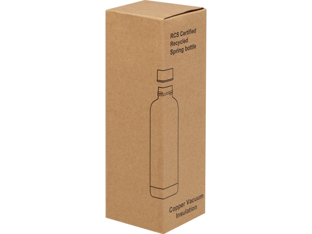 Бутылка из нержавеющей стали, сертифицированная RCS, с медной вакуумной изоляцией и лаконичным дизайном. Изолированная конструкция из нержавеющей стали предотвращает образование конденсата внутри бутылки, а модное матовое порошковое покрытие делает бутылку особенно прочной. Не содержит БФА, протестирована и одобрена в соответствии с немецким законодательством о безопасности пищевых продуктов (LFGB). Проверена на содержание фталатов и одобрена для использования в соответствии с правилами REACH. Объем 500 мл. Рекомендуется мыть вручную. Поставляется в подарочной коробке из переработанного картона. Recycled stainless steel.
