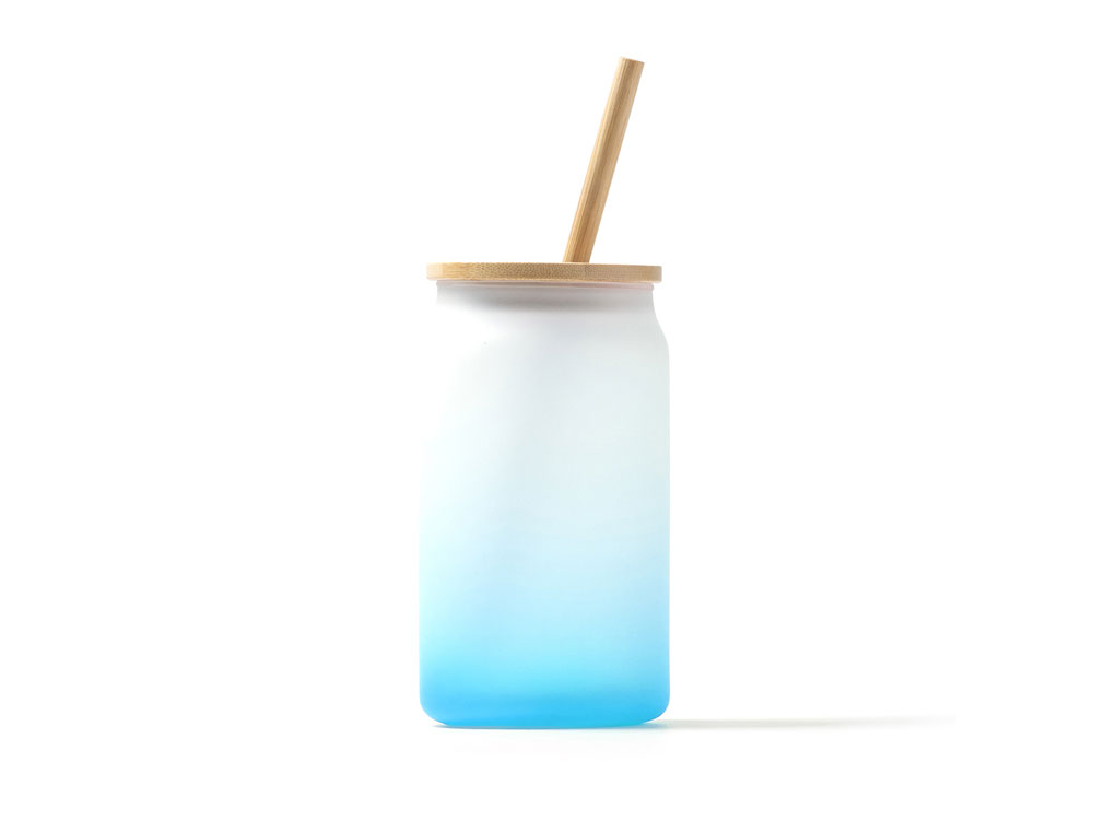 Стакан из боросиликатного стекла с цветовым градиентом. Бамбуковая крышка и соломинка. Емкость 350 мл.