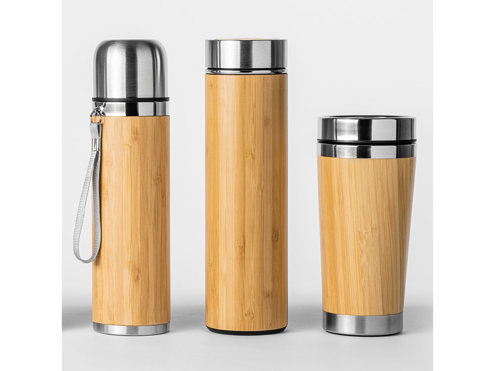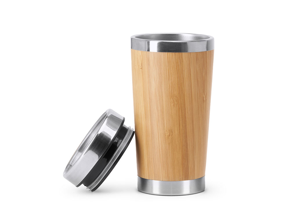 Стакан из нержавеющей стали 304 с бамбуковой внешней отделкой. Емкость 500 мл