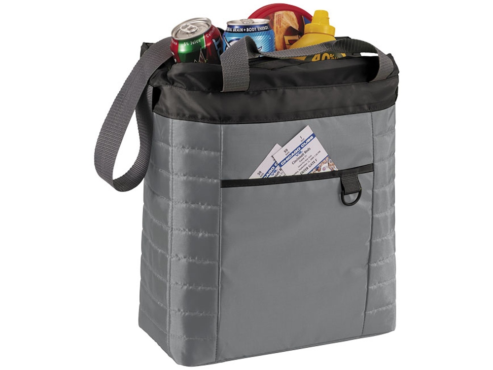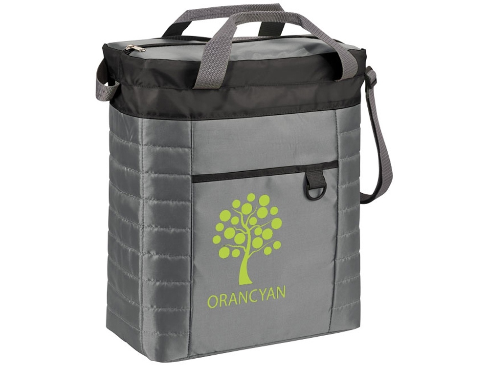 Стеганая сумка-холодильник. В комплекте: регулируемый ремень на плечо и ручки высотой 14 см. Стеганый корпус. Изоляционное отделение на молнии. Есть карман спереди и пластиковая петелька для ключей. 210D нейлон/ПВХ. Между стенок– плотная термоизоляционная прокладка. Благодаря ей сумка дольше сохраняет температуру внутри, время поддержания температуры около 3 часов в зависимости от температуры окружающей среды.