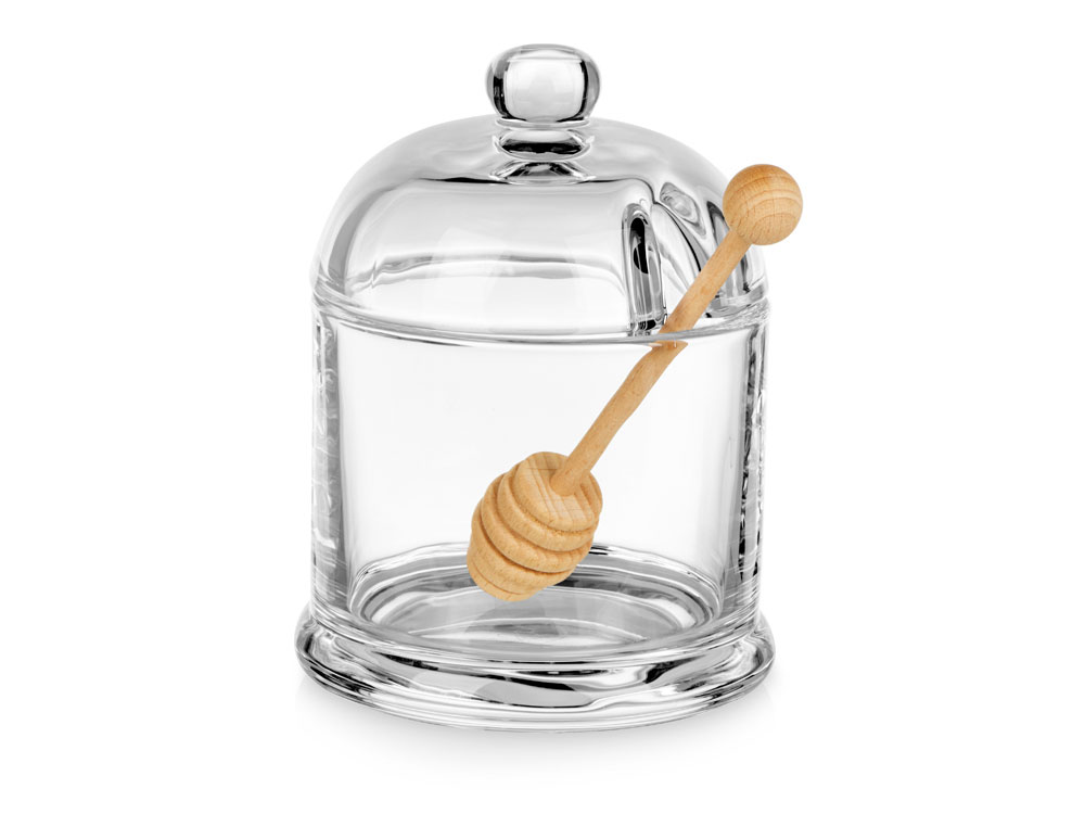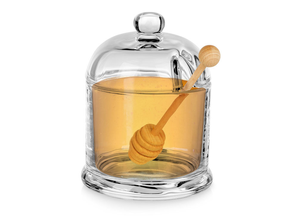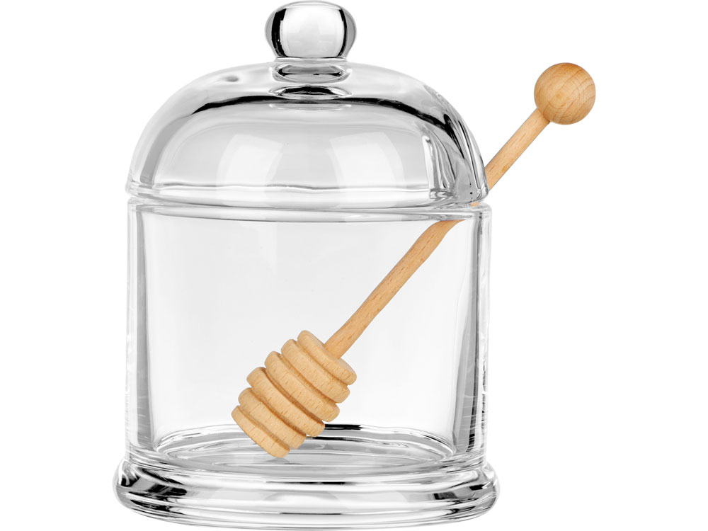Стеклянная емкость для меда с ложкой точно завоюет место в сердце любителя этого полезного лакомства. Кстати, внутрь можно положить не только мед, но и другие вкусные вещи — варенье, повидло, джемы, которые тоже удобно накладывать ложкой-веретеном. Сосуд выполнен из стекла, его можно мыть в посудомойке и разогревать в СВЧ-печи, что может очень пригодиться при приготовлении некоторых блюд и напитков с использованием меда. - ложка-веретено из бука в комплекте - можно мыть в посудомойке - можно греть в микроволновой печи - для меда, повидла, джемов, может использоваться как сахарница - 275 мл — оптимальный объем!