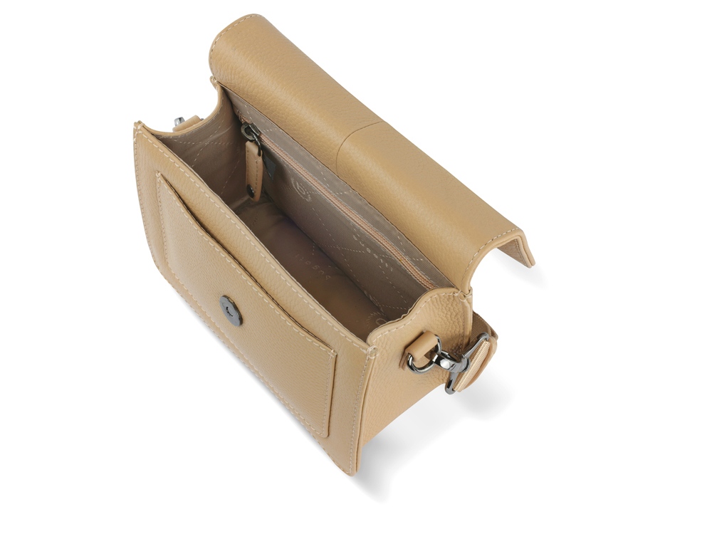 ЖЕНСКАЯ СУМКА ЧЕРЕЗ ПЛЕЧО ELSA Готовы к поездке в выходные? Мы раскрасим вашу ленту в соцсетях невероятной коллекцией ELSA. Коллекция ELSA предлагает широкий ассортимент аксессуаров и сумок разных форм и размеров, от элегантных кошельков и изящных наплечных сумочек для выхода в свет до вместительных шопперов и дорожных сумок для путешествий. Все модели серии изготовлены из высококачественной мягкой воловьей кожи и представлены в классическом черном, белом и бежевом цветах. Элегантное тиснение логотипа Bugatti придает очарование каждой модели. Коллекция выделяется продуманной функциональной организацией внутреннего пространства и защитой от радиочастотной идентификации RFID. Кошельки и ключницы оснащены специальным защитным слоем из фольги, который предотвращает незаконное сканирование вашей личной информации и препятствует списанию денежных средств с банковских карт. Какой бы аксессуар или сумку вы бы ни предпочли, будьте уверены, что с коллекцией ELSA вы точно окажетесь в центре внимания. СВОЙСТВА Функциональная организация: основное отделение на магнитной кнопке с карманом на молнии, передний открытый карман, задний карман на молнии, съемный регулируемый плечевой ремень (до 130 см). Материал: воловья кожа/полиэстер Размер: 18,5 х 8,5 х 14,5 см Вес: 0,385 кг
