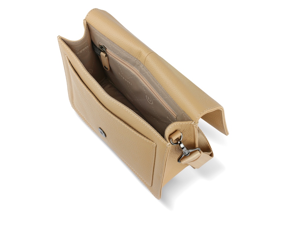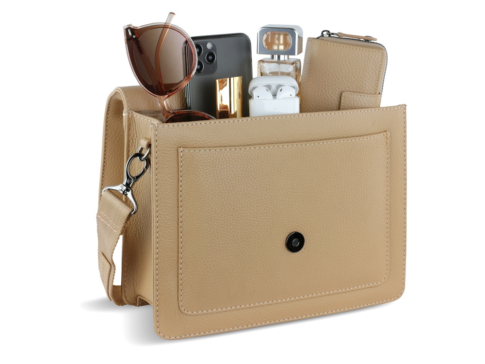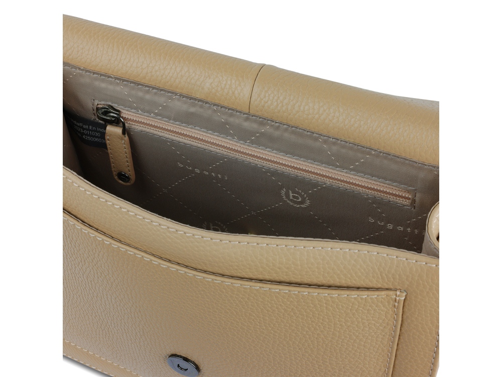 ЖЕНСКАЯ СУМКА ЧЕРЕЗ ПЛЕЧО ELSA Готовы к поездке в выходные? Мы раскрасим вашу ленту в соцсетях невероятной коллекцией ELSA. Коллекция ELSA предлагает широкий ассортимент аксессуаров и сумок разных форм и размеров, от элегантных кошельков и изящных наплечных сумочек для выхода в свет до вместительных шопперов и дорожных сумок для путешествий. Все модели серии изготовлены из высококачественной мягкой воловьей кожи и представлены в классическом черном, белом и бежевом цветах. Элегантное тиснение логотипа Bugatti придает очарование каждой модели. Коллекция выделяется продуманной функциональной организацией внутреннего пространства и защитой от радиочастотной идентификации RFID. Кошельки и ключницы оснащены специальным защитным слоем из фольги, который предотвращает незаконное сканирование вашей личной информации и препятствует списанию денежных средств с банковских карт. Какой бы аксессуар или сумку вы бы ни предпочли, будьте уверены, что с коллекцией ELSA вы точно окажетесь в центре внимания. СВОЙСТВА Функциональная организация: основное отделение на магнитной кнопке с карманом на молнии и открытым карманом, передний открытый карман, задний карман на молнии, съемный регулируемый плечевой ремень (до 130 см). Материал: воловья кожа/полиэстер Размер: 25 х 8,5 х 20 см Вес: 0,54 кг