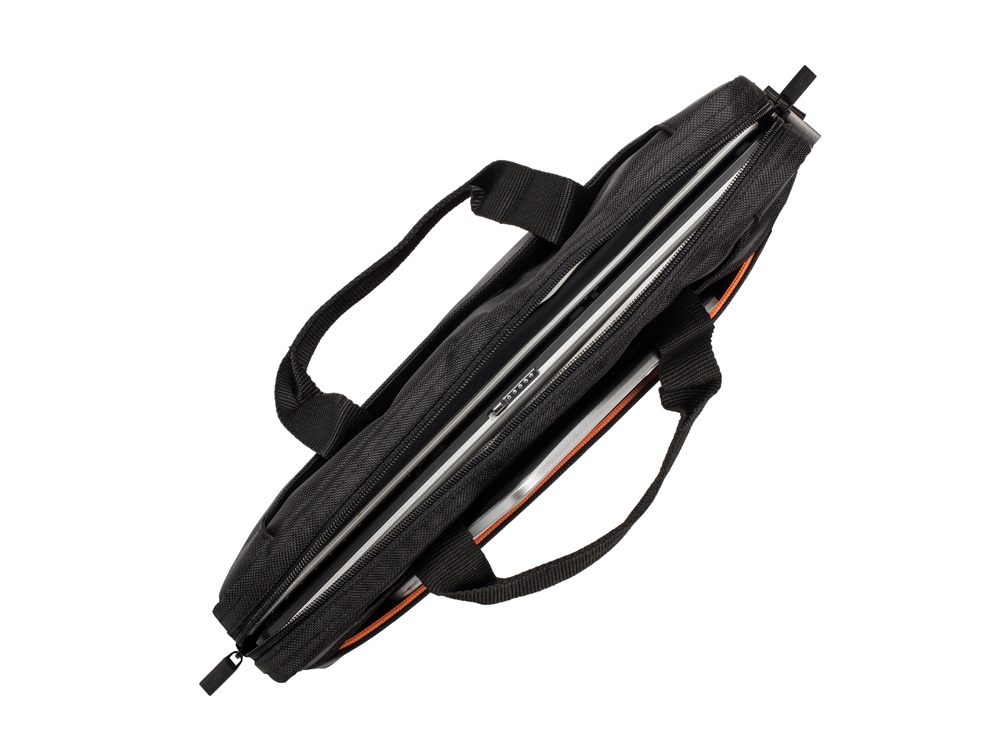 Сумка для ноутбука до 15.6''. • Сумка выполнена из плотного материала для лучшей защиты ноутбука от случайных механических повреждений. • Помимо основного отсека, сумка оснащена тремя дополнительными карманами, в которых без труда разместятся документы, аксессуары и другие небольшие гаджеты. • Двойная молния для удобного доступа к ноутбуку. • Ручки убираются во внешние отделения с двух сторон, что придает сумке более компактный вид. • Регулируемый съемный плечевой ремень.