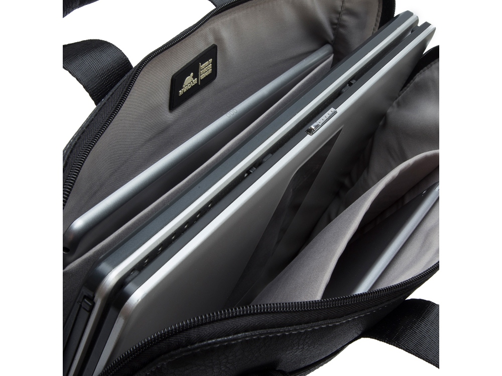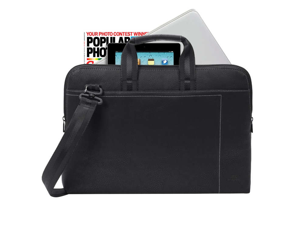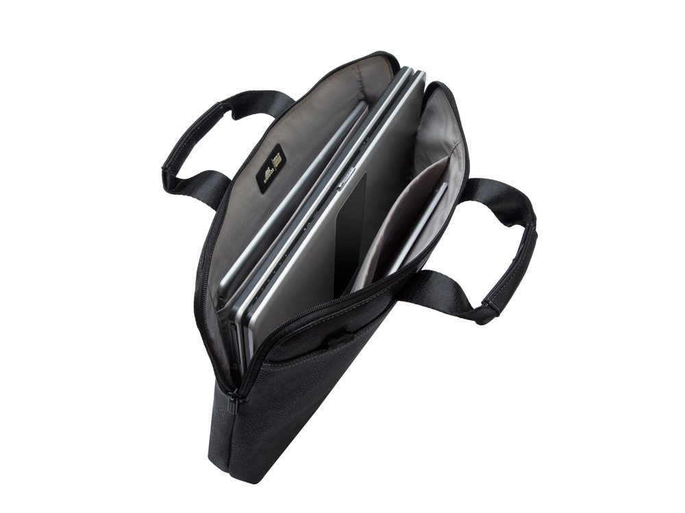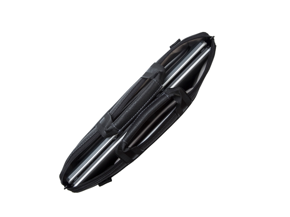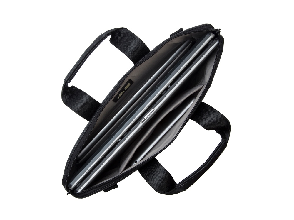 Сумка для ноутбука до 15.6''. • Ультратонкая и легкая сумка для ноутбуков до 15.6. • Сумка выполнена из плотной искусственной кожи и имеет утолщенные стенки для защиты ноутбука от случайных ударов и царапин, а также от пыли и влаги. • Два дополнительных внутренних отделения помогут удобно разместить все необходимые аксессуары, планшет до 10.1 и документы. • Также имеется внутренний карман на молнии для бумажника, паспорта. • Контрастная, светлая подкладка облегчает поиск необходимого гаджета. • Ручки из оригинальной, цельной стропы закреплены через всю внутреннюю поверхность сумки, что значительно усиливает конструкцию сумки. • Регулируемый, съемный плечевой ремень.